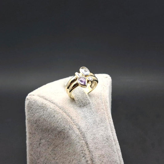 Gold Damenring mit Topas Amethyst und Zirkonia, Goldring Gr. 49