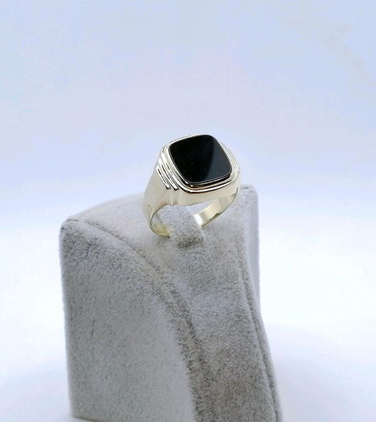 Vintage Gold Siegelring mit Onyxstein, 333er Goldring Gr. 69