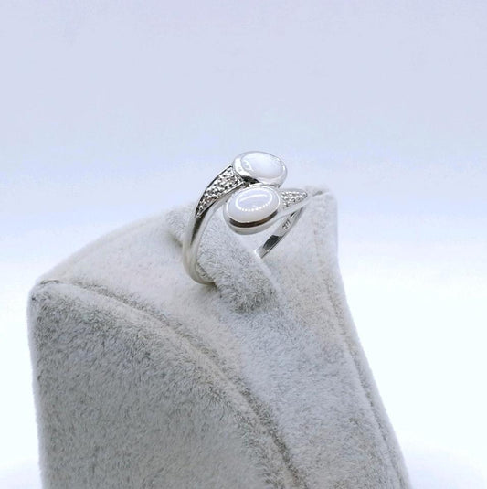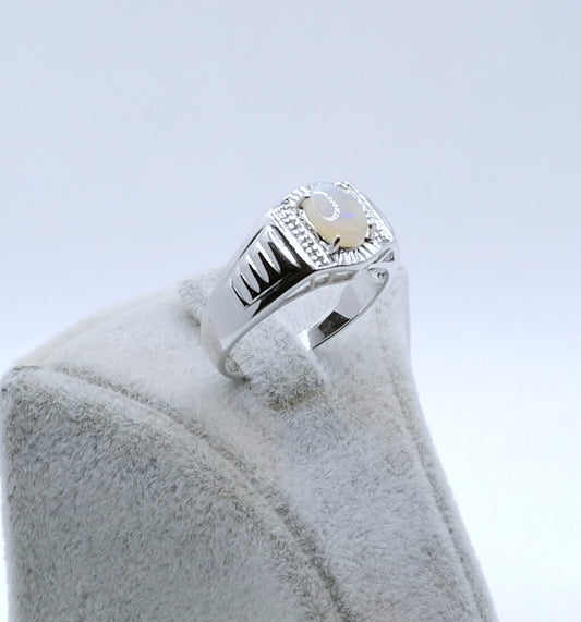 Weißgold Damenring mit Opal und Diamantsplitter 375er Goldring Gr. 55