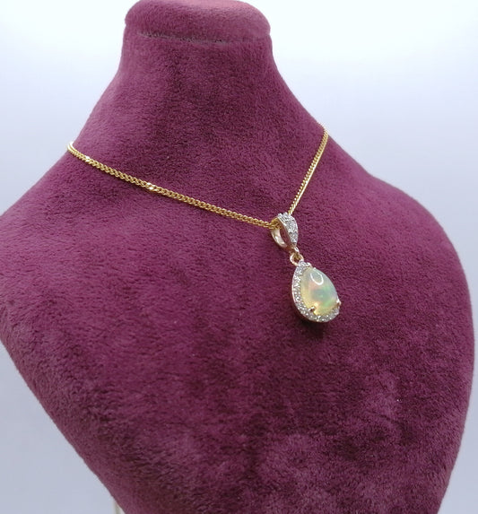 Anhänger Gold 375er mit Äthiopischem Opal und Diamanten