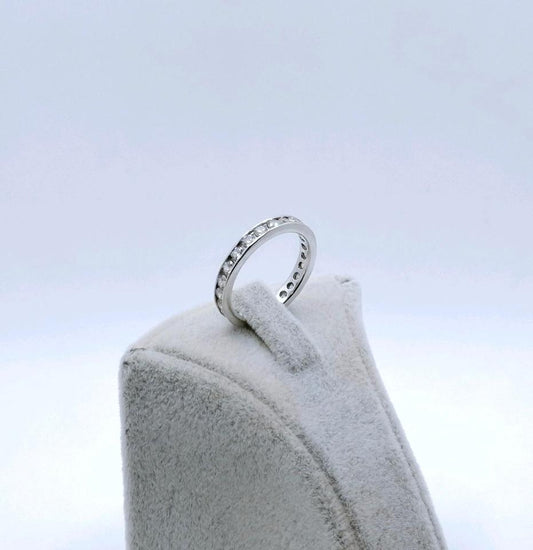 Neuwertiger Weißgold Eternity Memoire Damenring, 333er Goldring Gr. 57