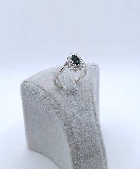 Ring Weißgold 585er mit Saphir und Diamanten