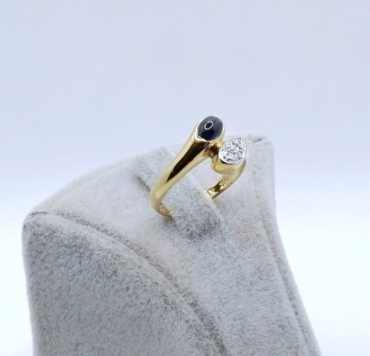 Ring Gold 333er mit Saphir Cabochon und Diamantsplitter Gr. 53