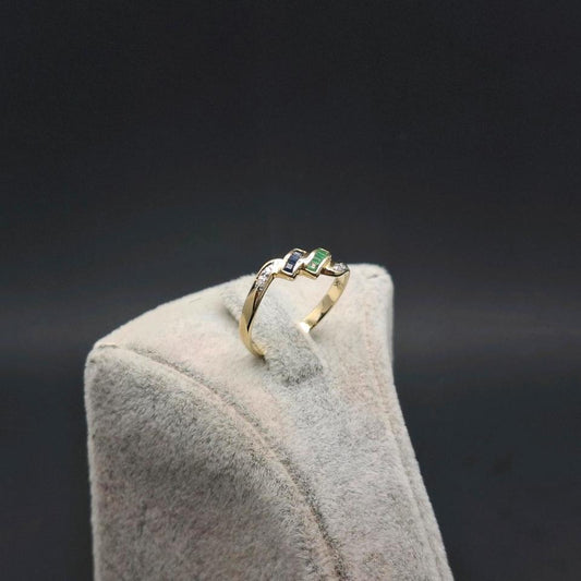 Gold Damenring mit Saphir, Smaragd und Diamant, 585er Goldring Gr. 53