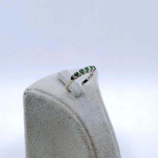 Vintage Weißgold Damenring mit Smaragd Edelsteinen, Goldring Gr. 53