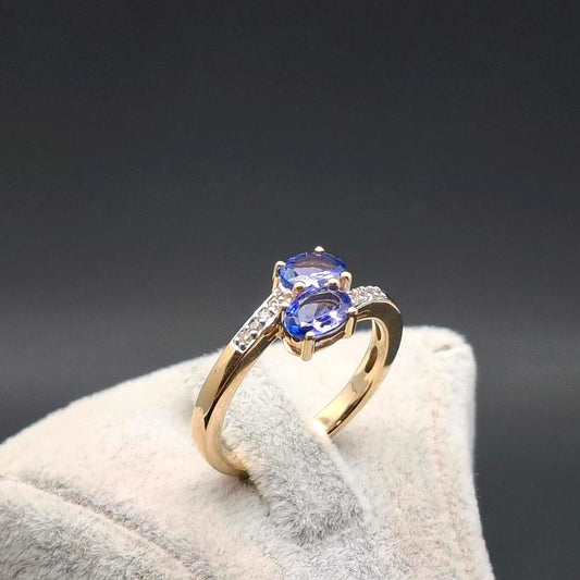 Gold Damenring mit Tansanit AAA und Diamanten, Goldring