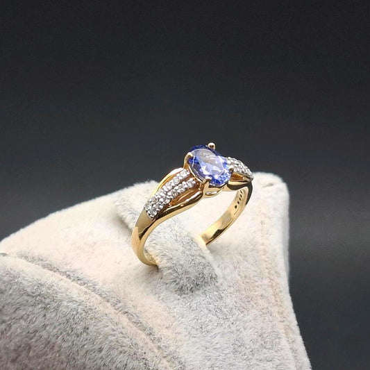 Gold Damenring mit Tansanit AAA und Diamanten, Goldring