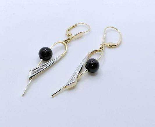 Ohrhänger 333er Gold mit Onyx Perle und Diamantsplitter