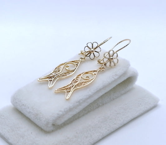 Filigrane Gold Ohrhänger, 585er 14 karat Gold Ohrringe