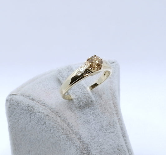 Ring Gold 375er mit braunem Zirkon und Diamantsplitter Gr. 63