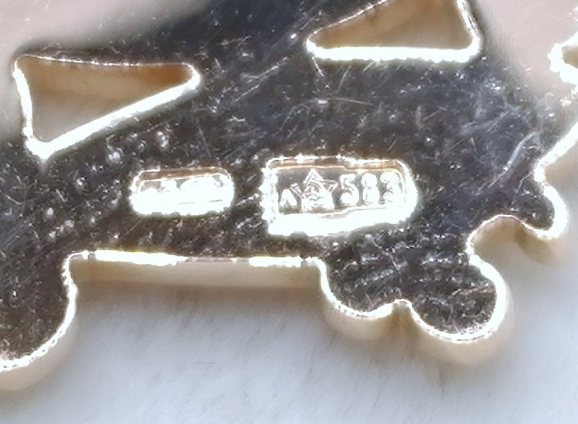 Rotgold UdSSR Sternzeichen Fische Halsketten Anhänger. Das Schmuckstück ist aus 583er 14 Karat Russischem Rotgold gefertigt. Der Anhänger befindet sich in einem neuwertigen Zustand.