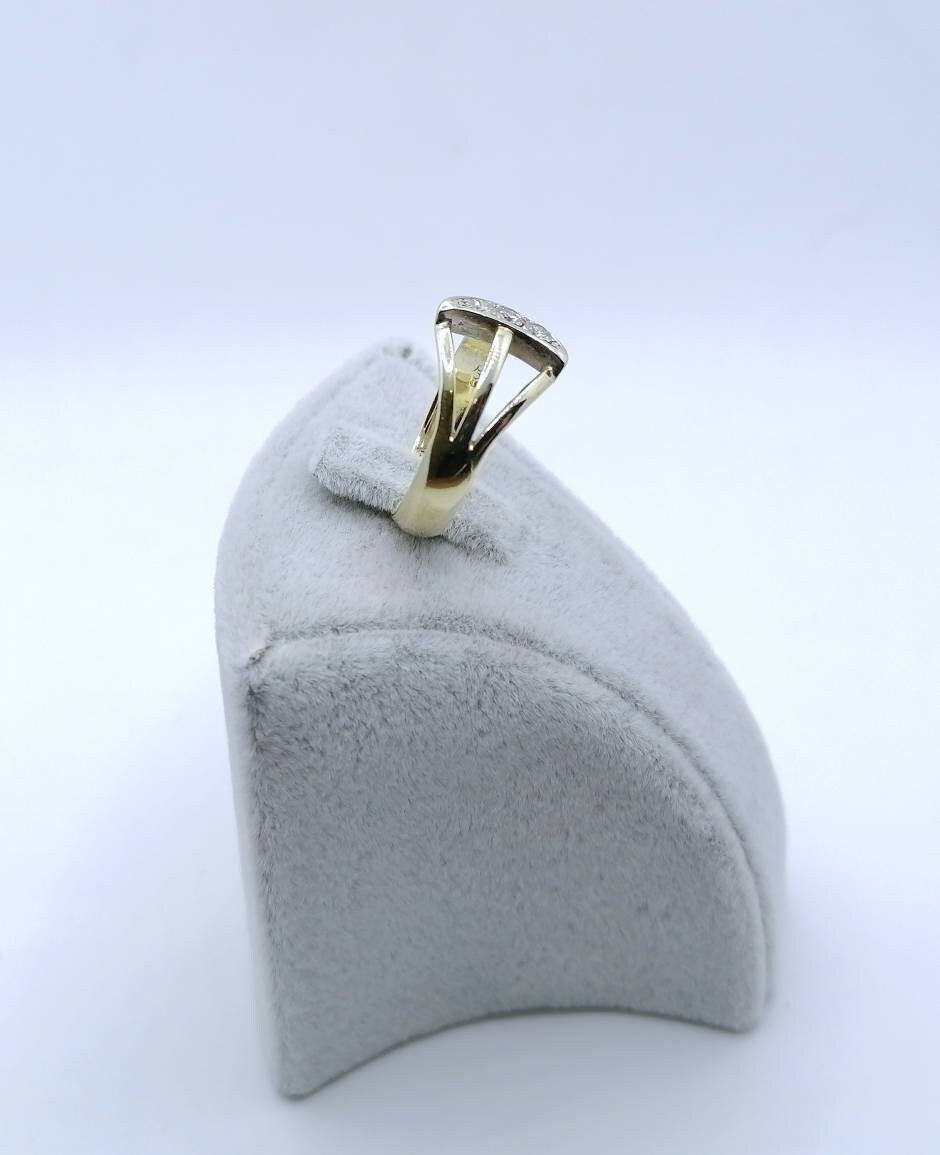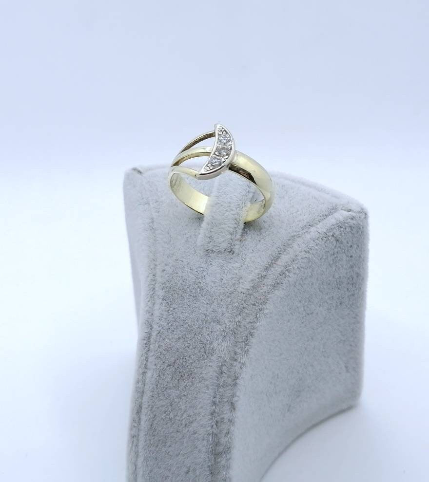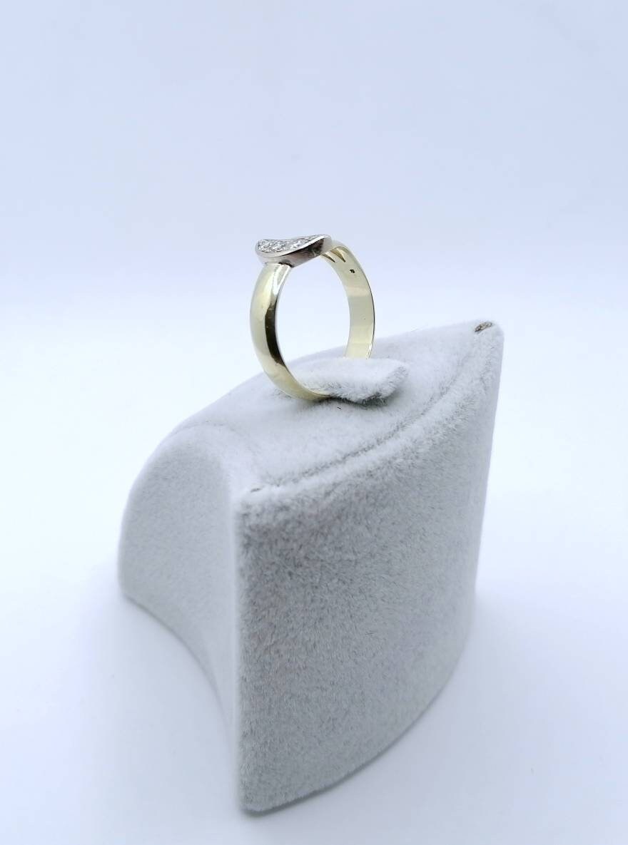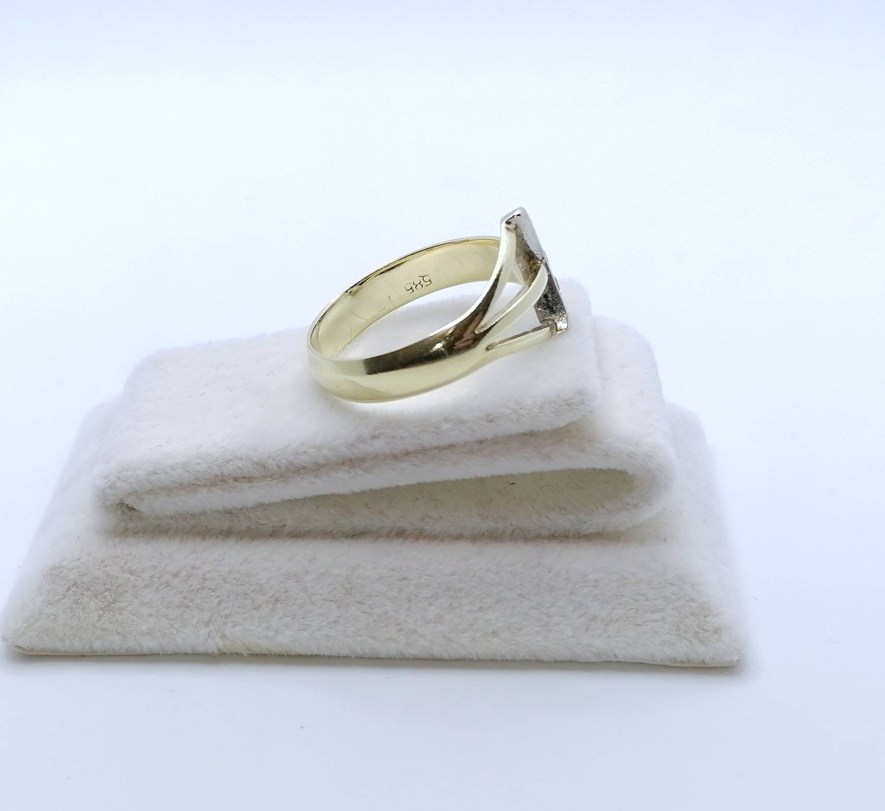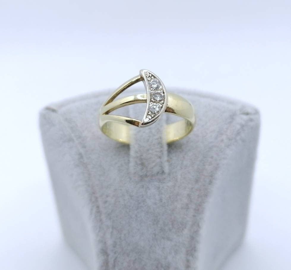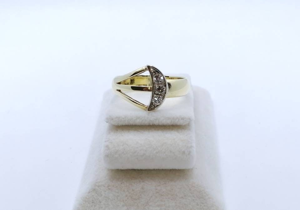 Vintage Gold Damenring verziert mit drei funkelnden Brillanten. Der Ring ist aus 585er 14 karat Gold gefertigt und wartet gespannt auf seine neue Besitzerin.