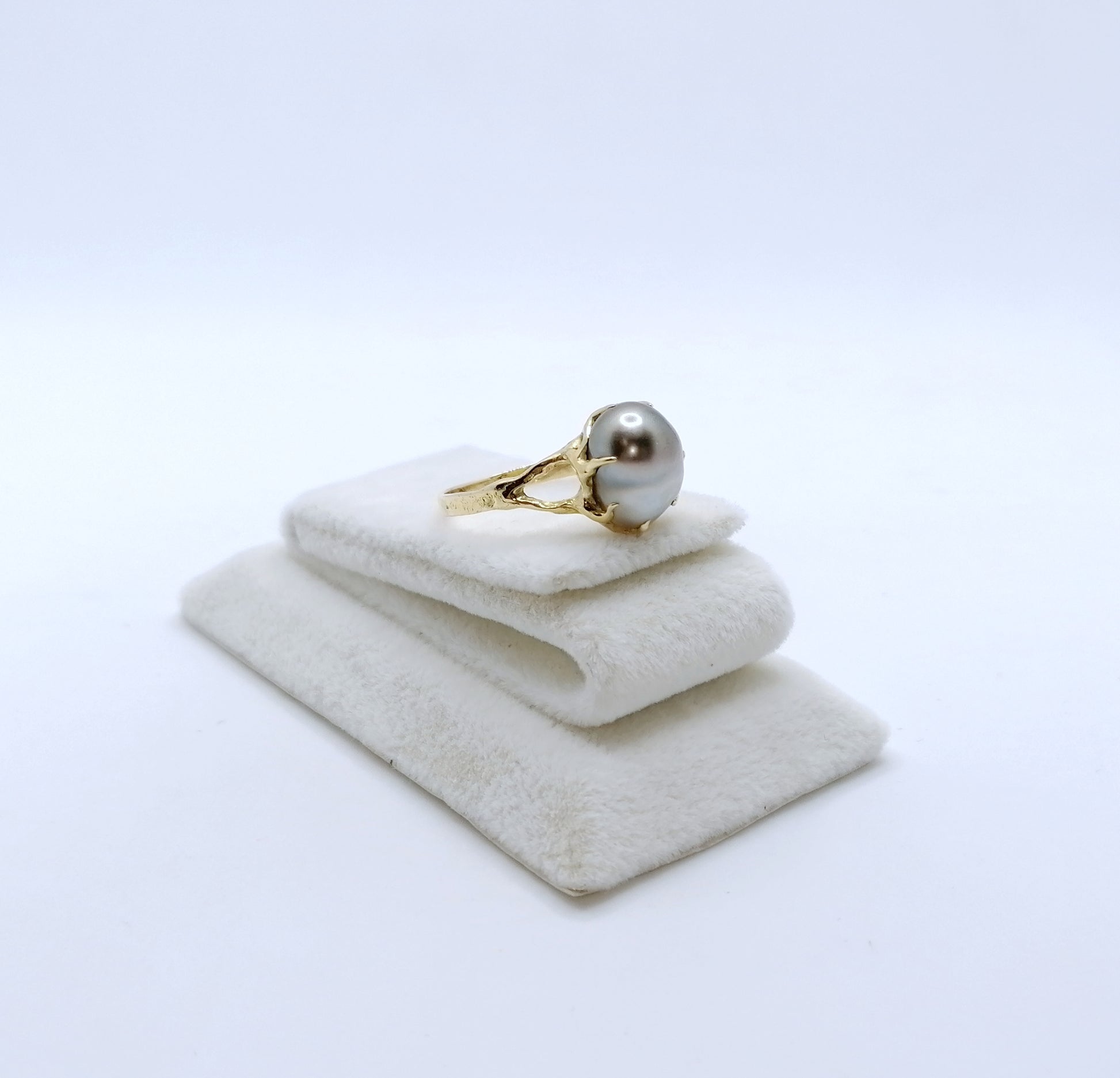 Traumhafter Gelbgold Damenring mit einer entzückenden Tahiti Perle. Das Schmuckstück ist aus 750er 18 Karat Gold gefertigt.