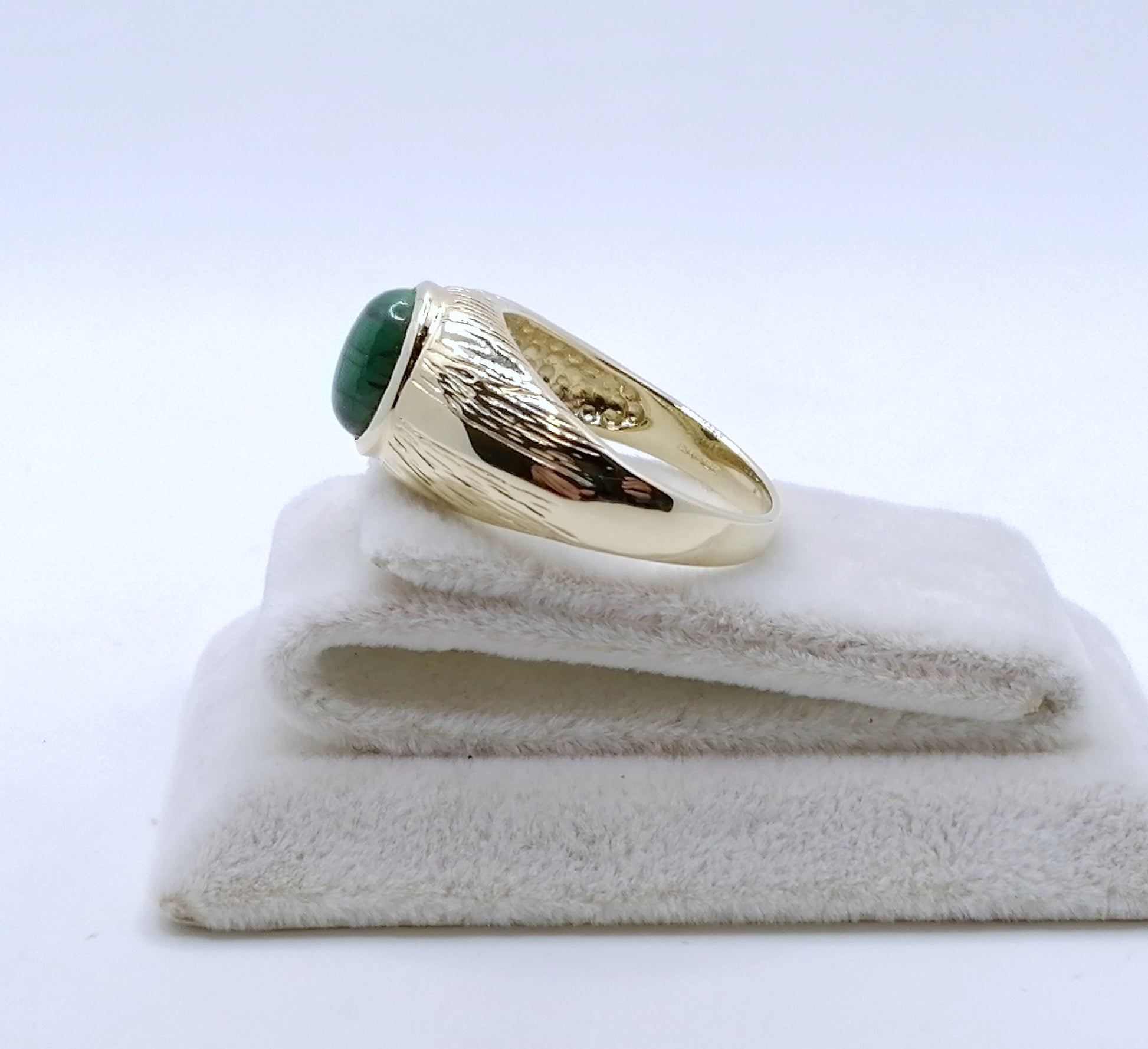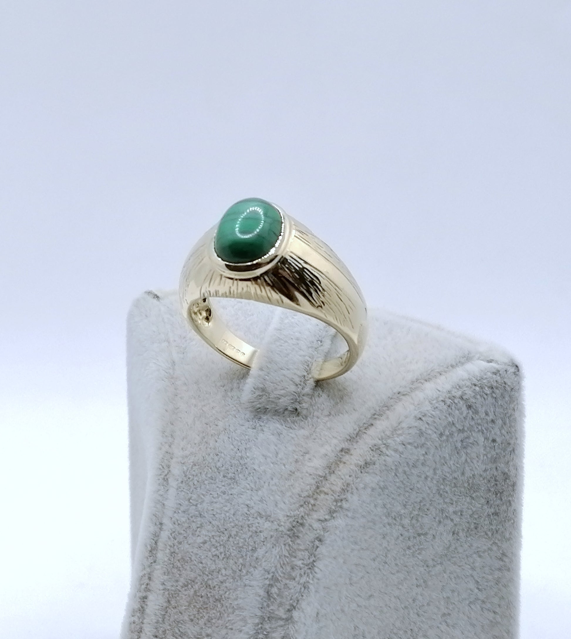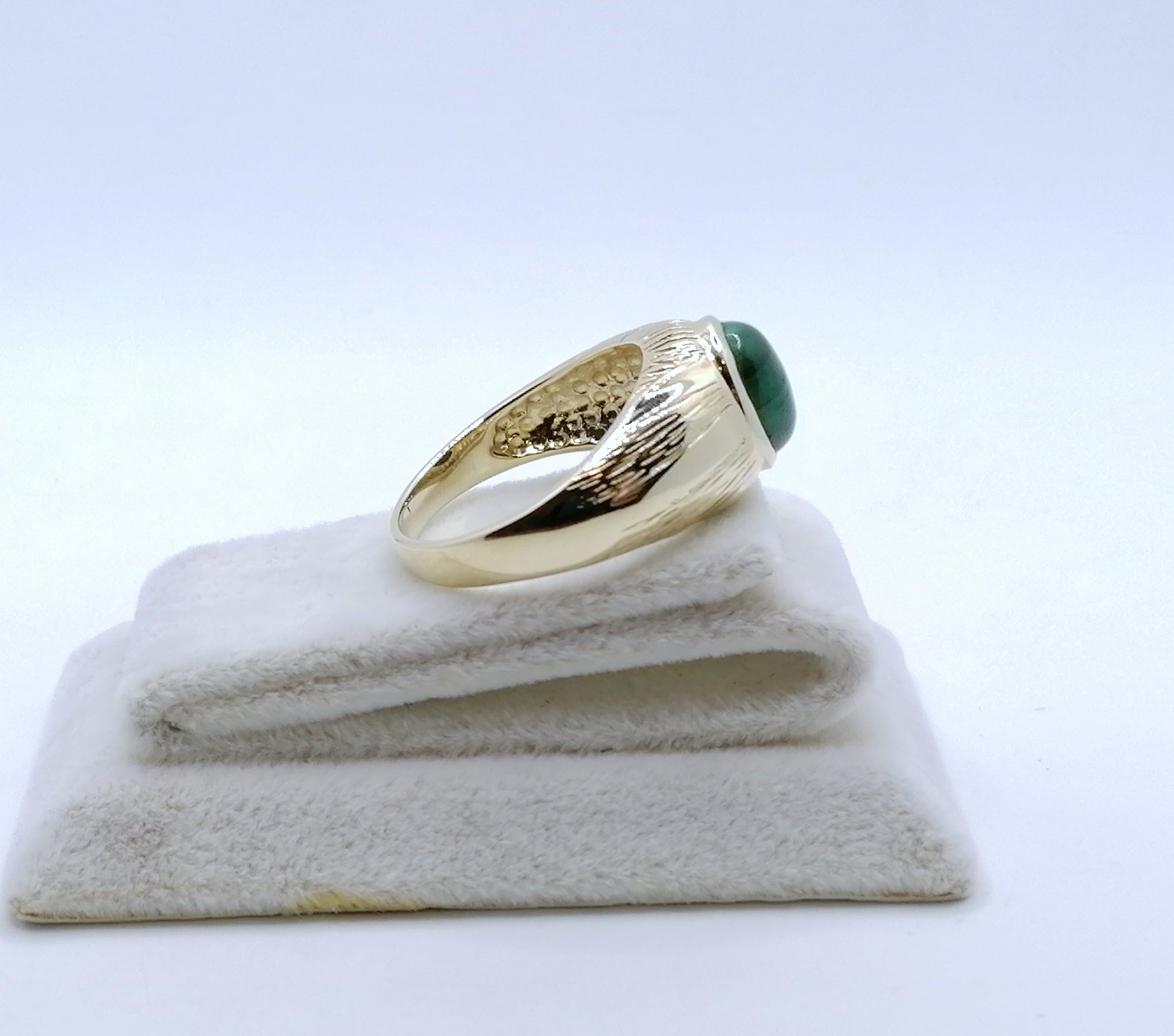 Absolut neuwertiger Gold Damenring mit einem Malachit. Der Ring ist aus 375er 9 Karat Gold gefertigt.