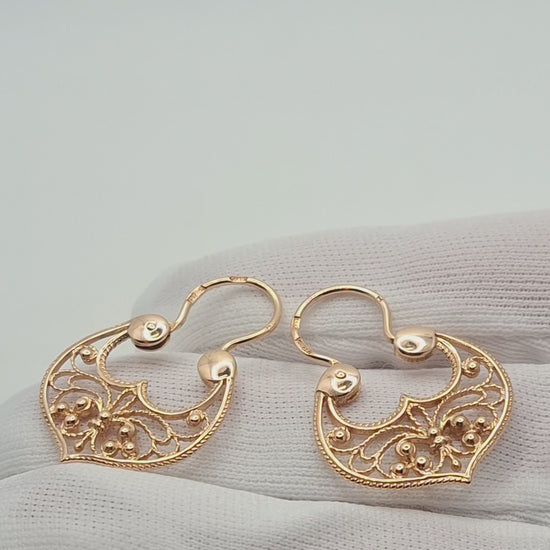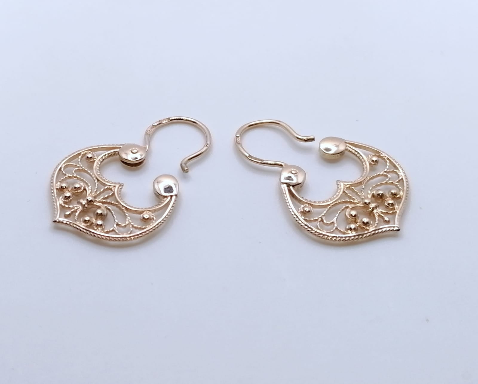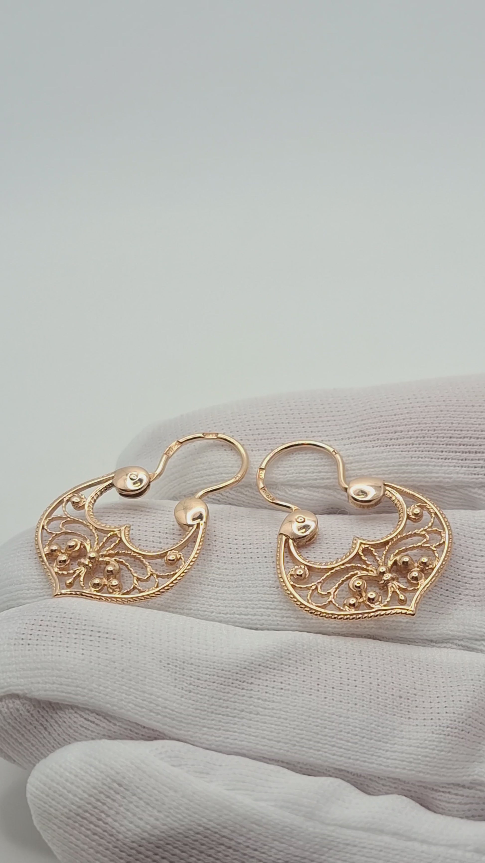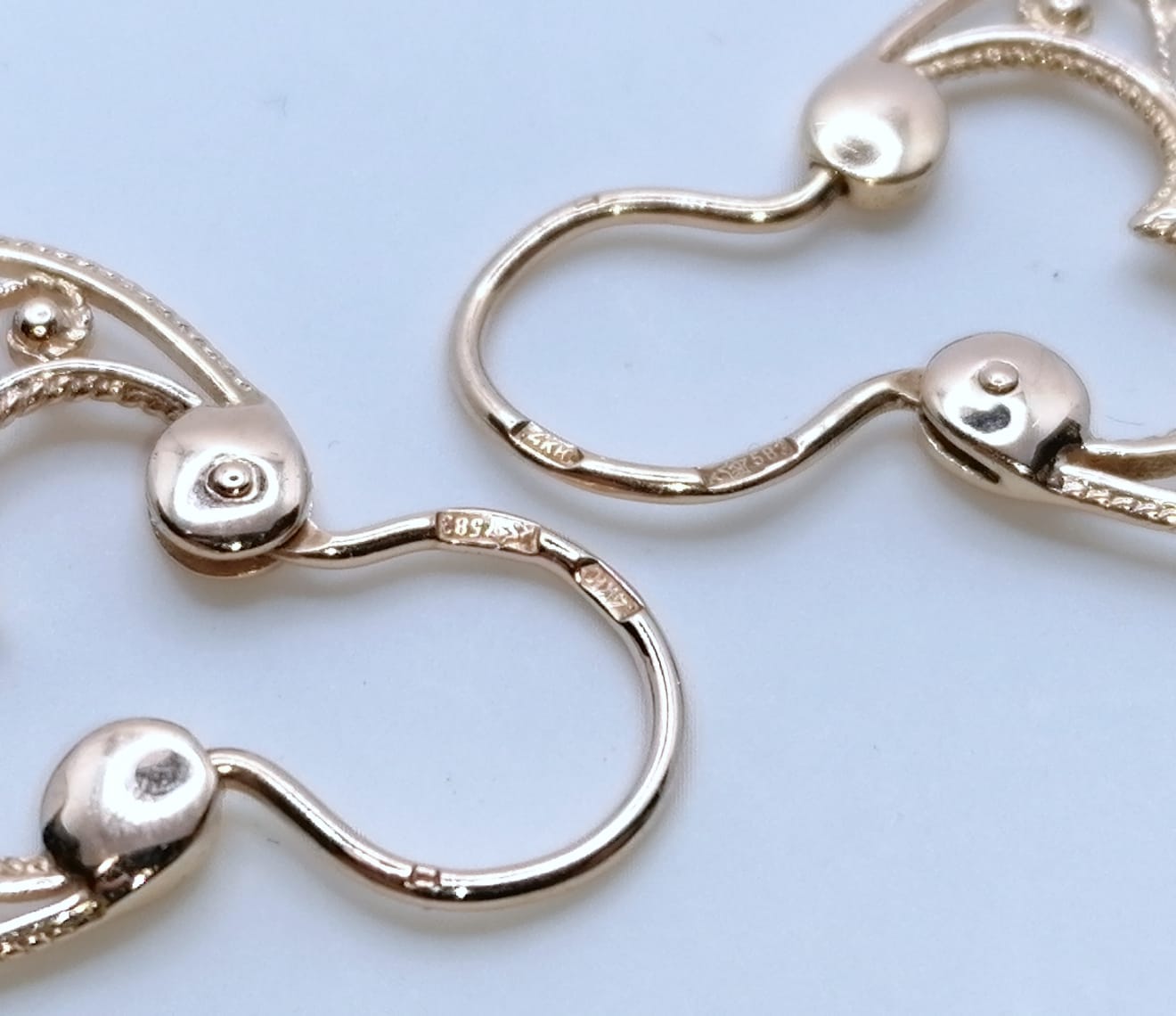 Filigrane UdSSR Sowjet Rotgold Ohrhänger, 583er Gold Ohrringe