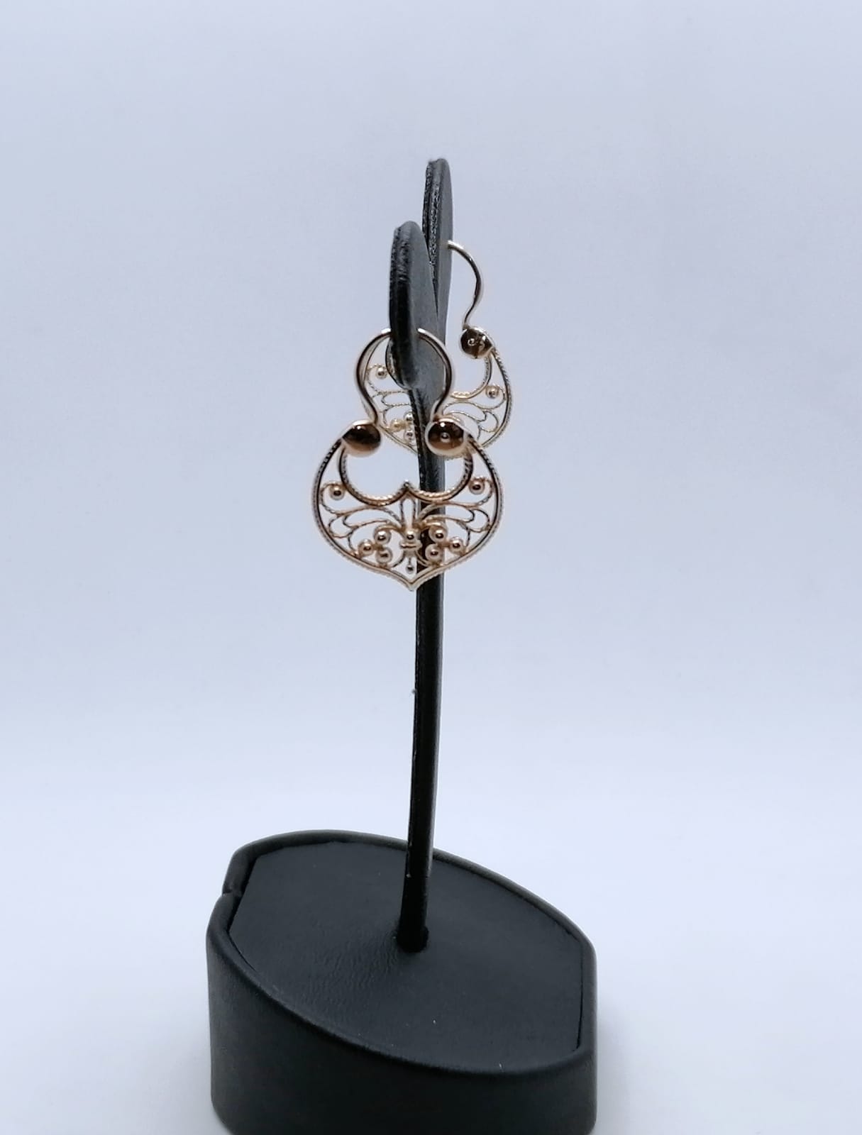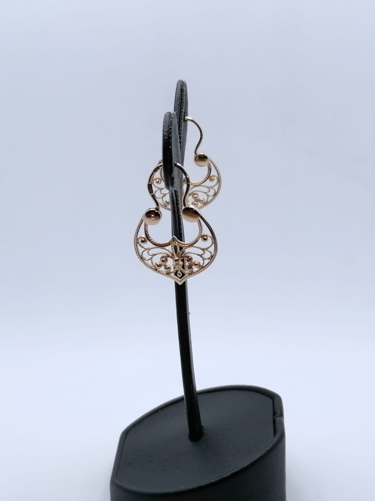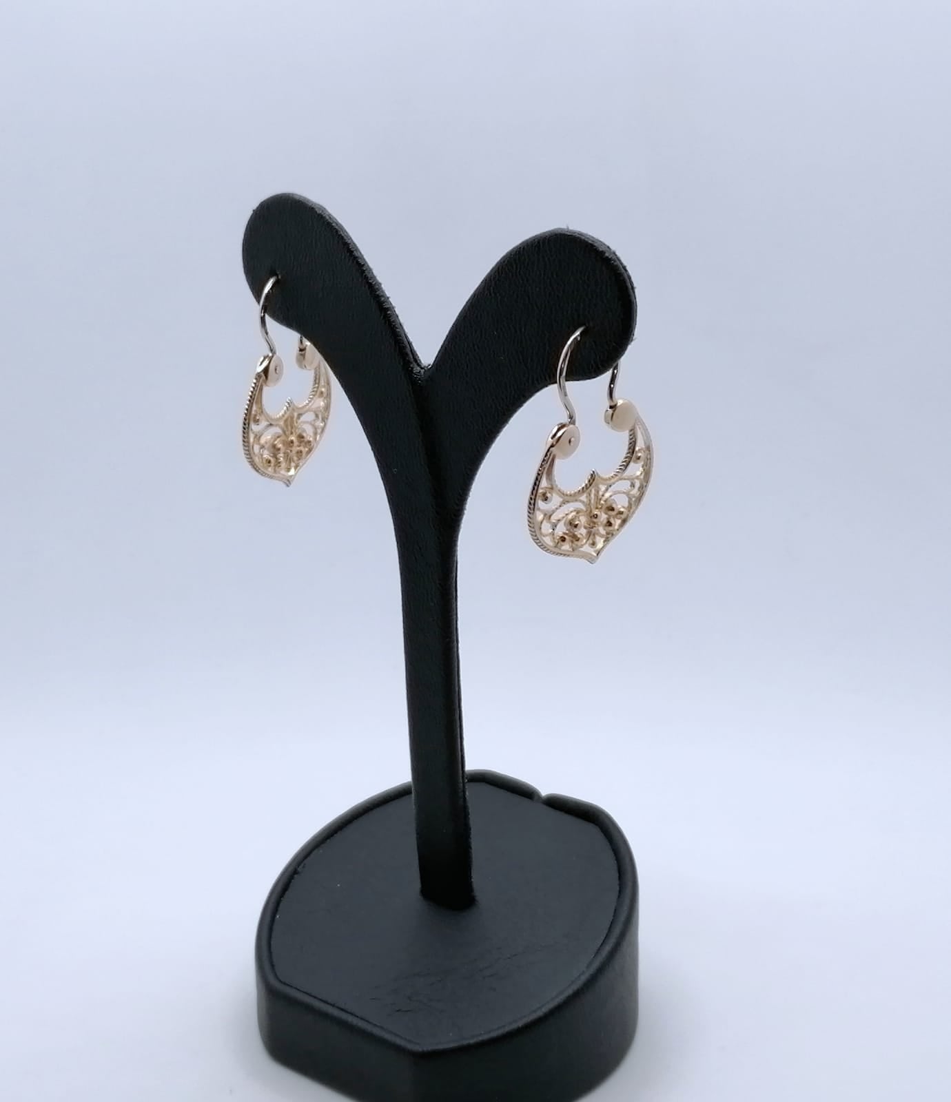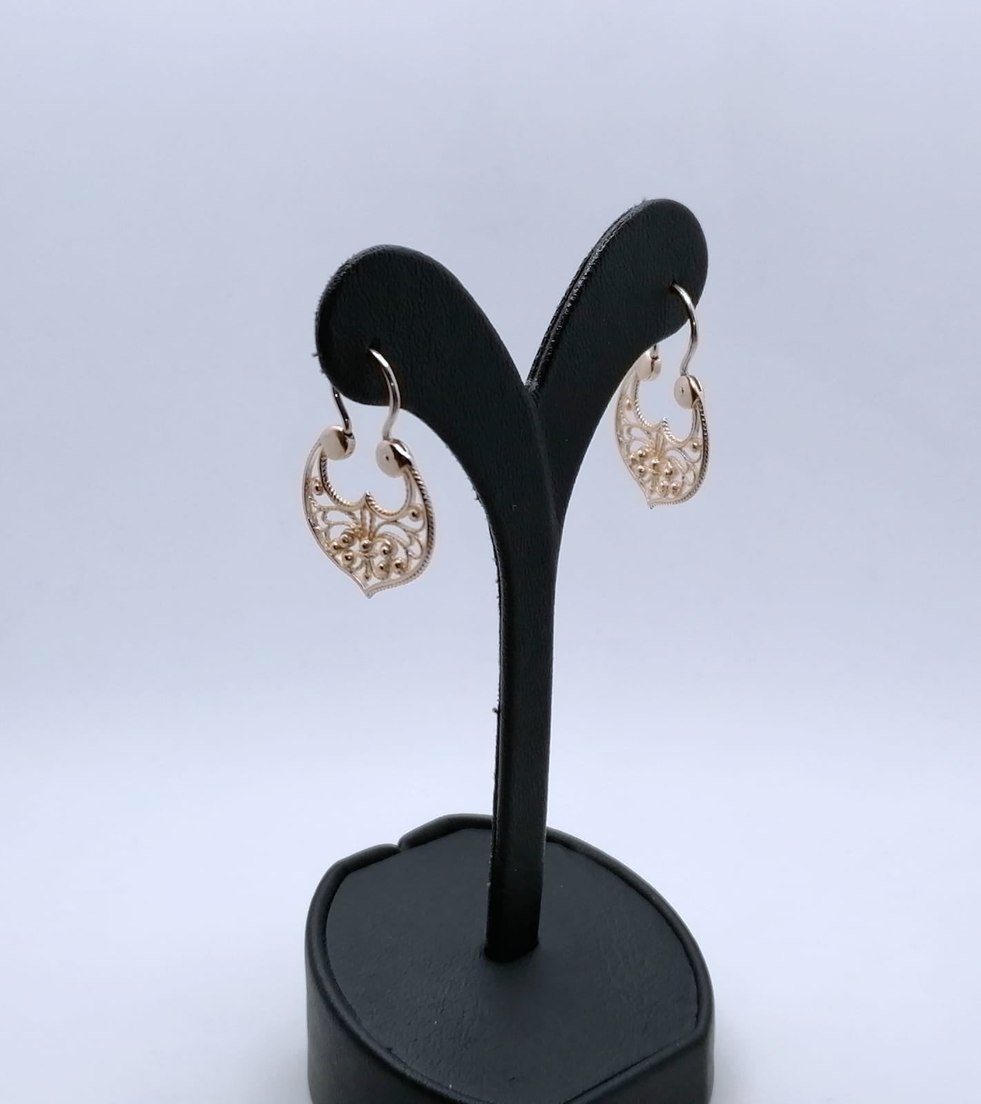 Filigrane UdSSR Sowjet Rotgold Ohrhänger, 583er Gold Ohrringe