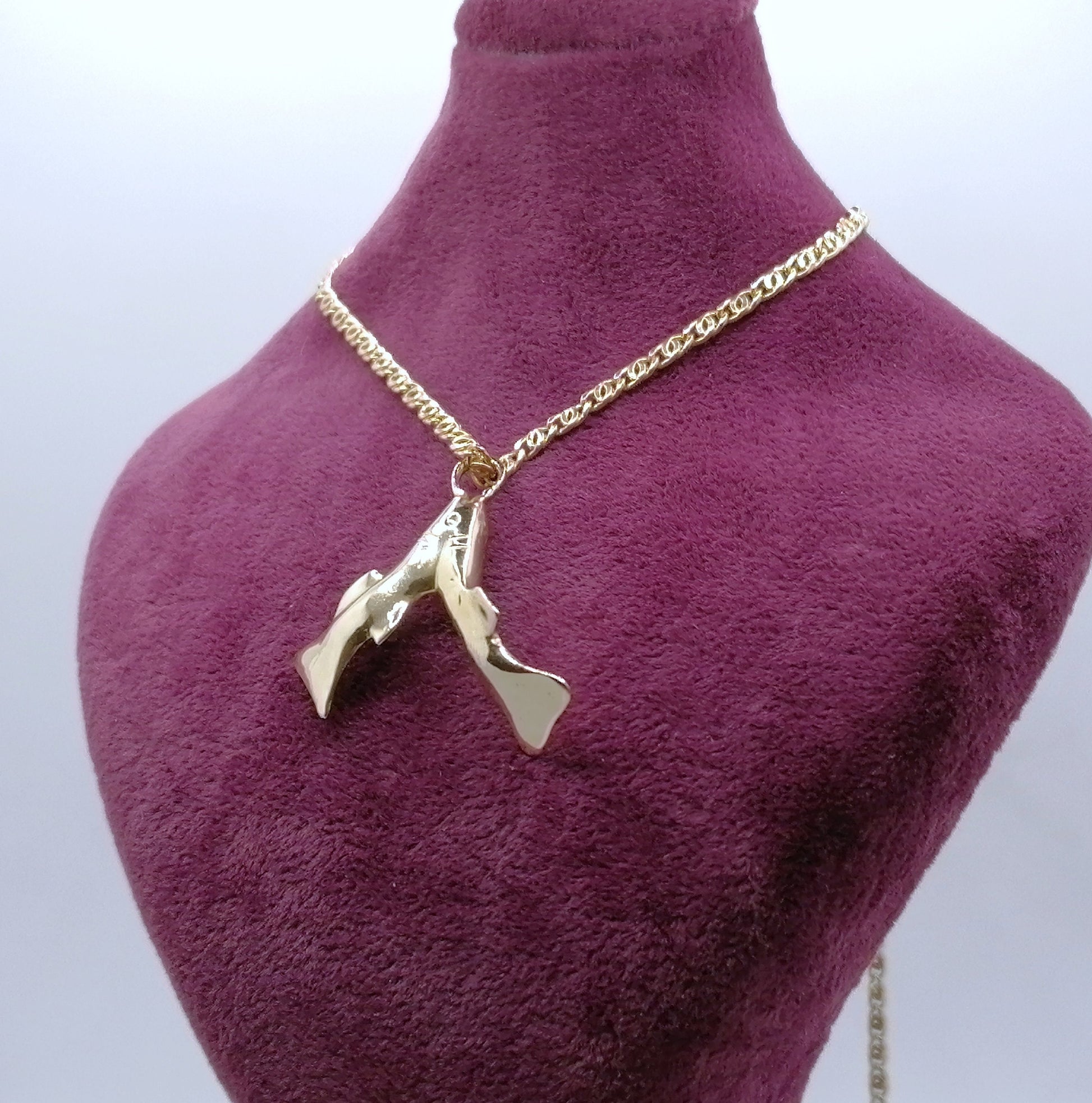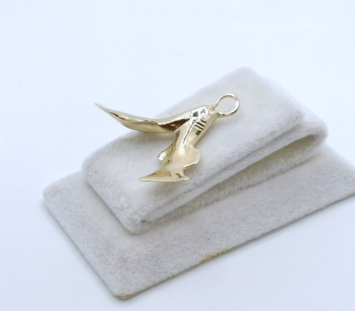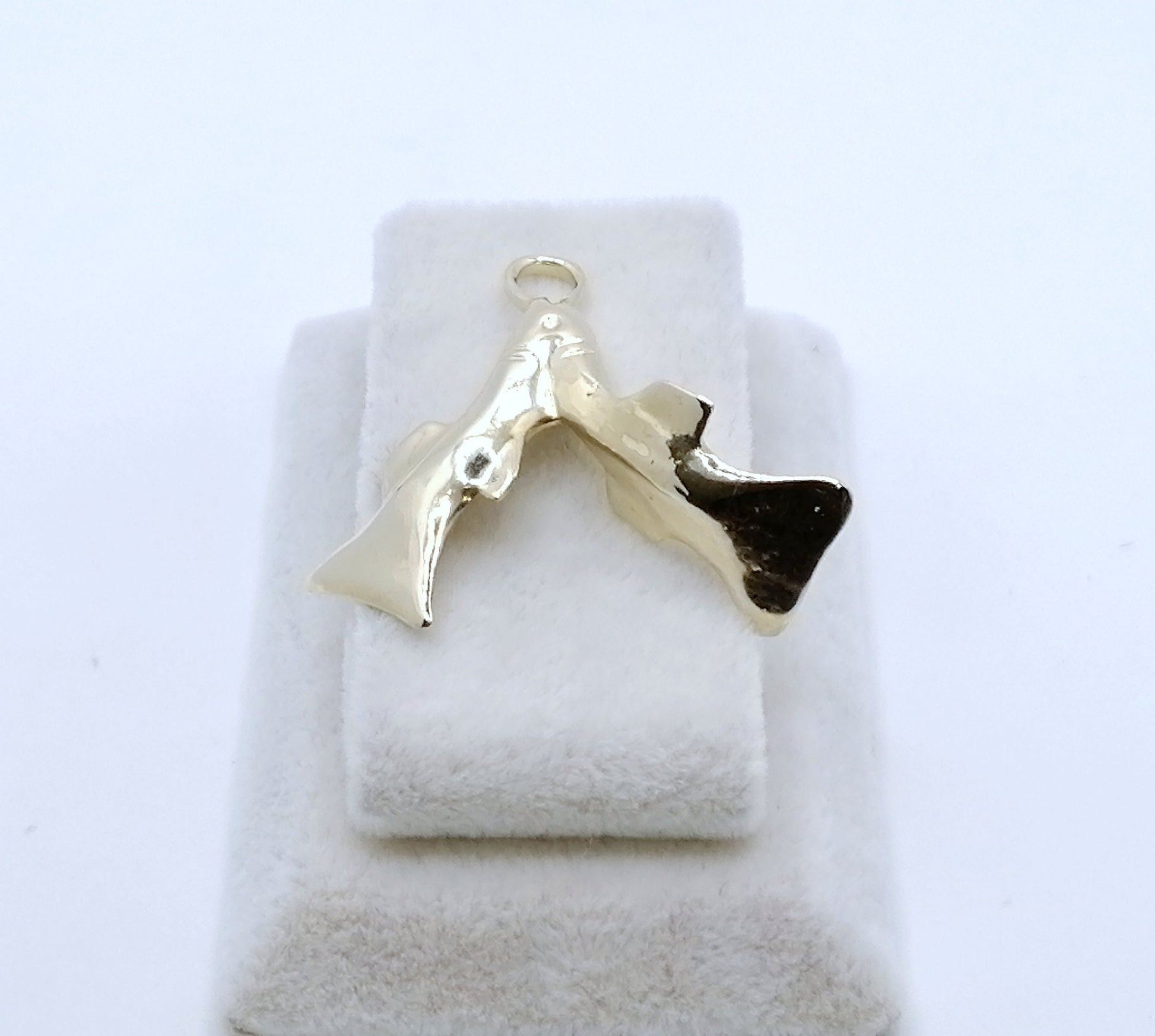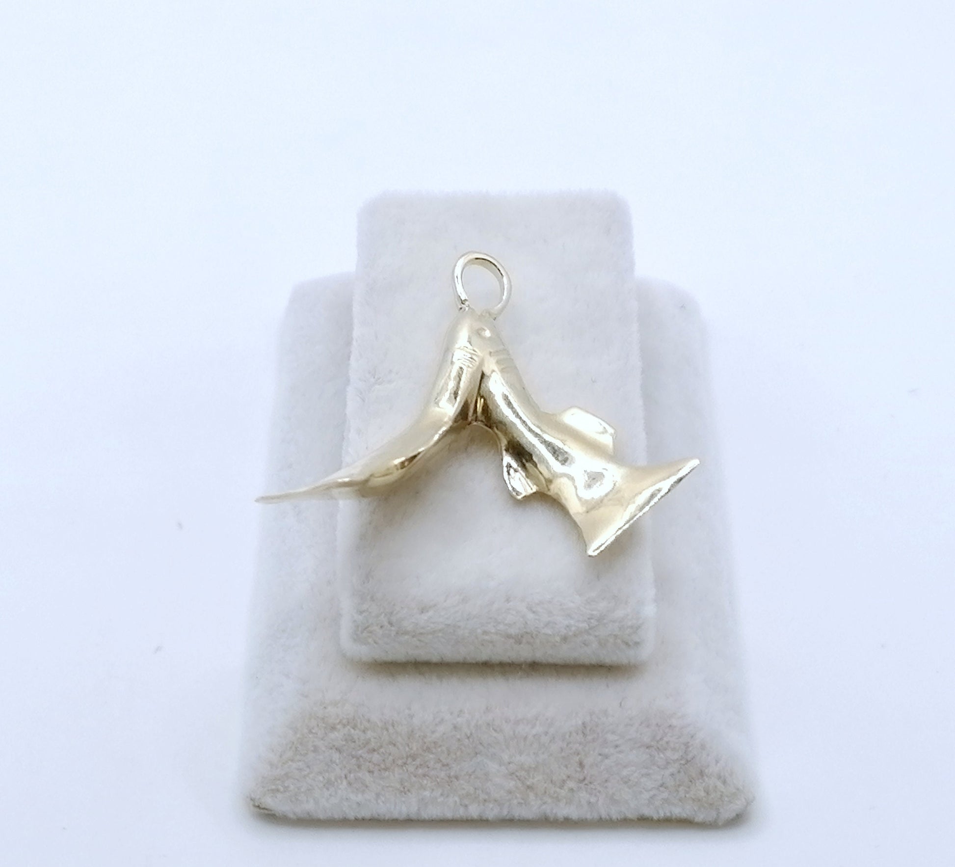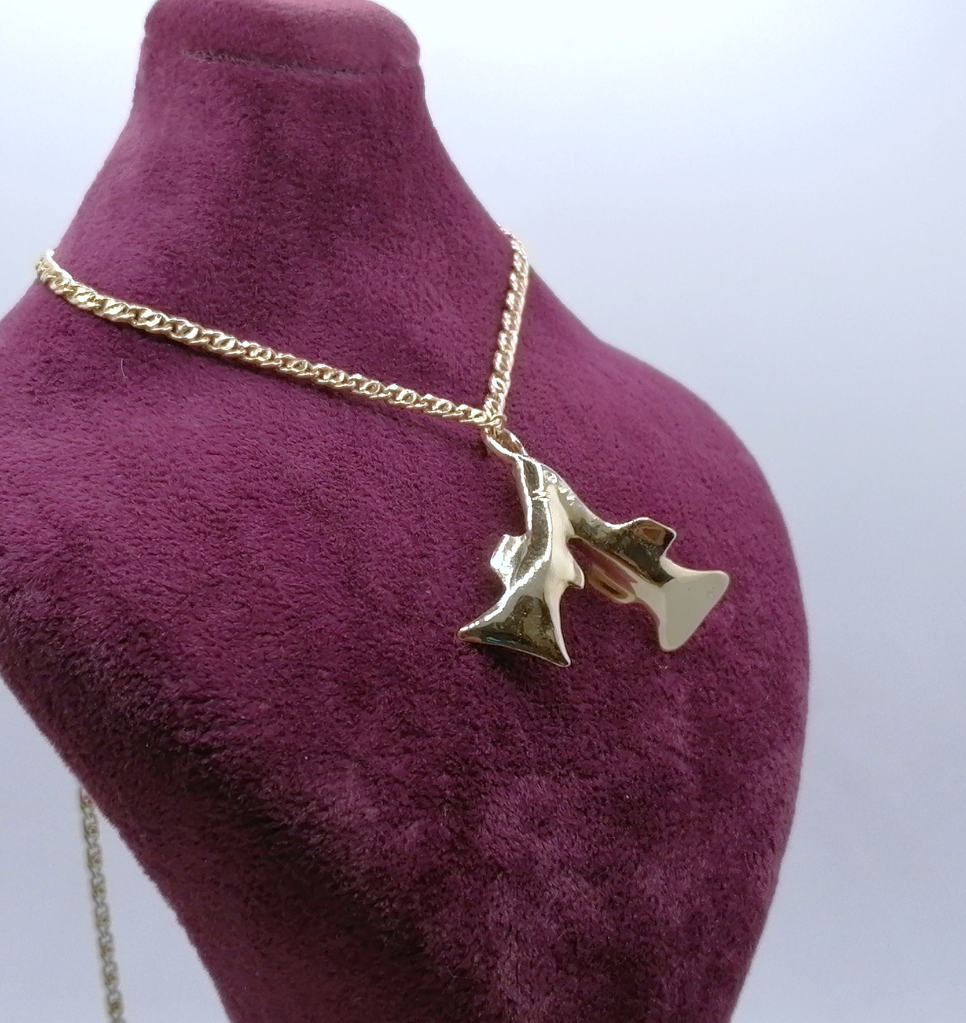 Unikat Gold Halsketten Anhänger in Fisch Form. Der Anhänger ist aus 585er 14 karat Gold gefertigt.