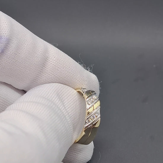 Neuwertiger Gold Damenring mit funkelnden Brillanten. Das Schmuckstück ist aus 375er 9 karat Gelbgold und Weißgold gefertigt.