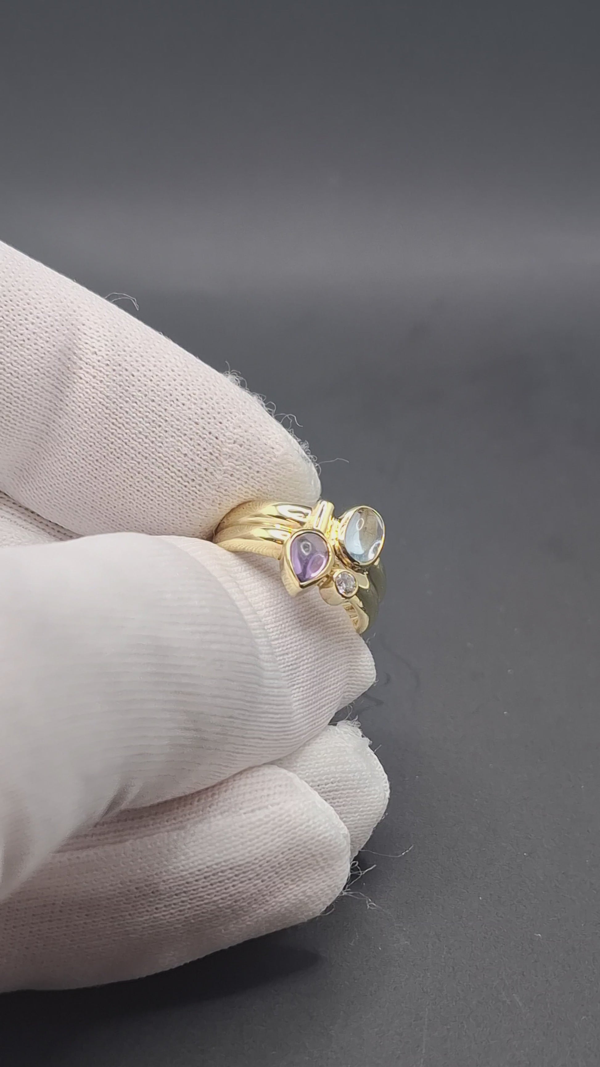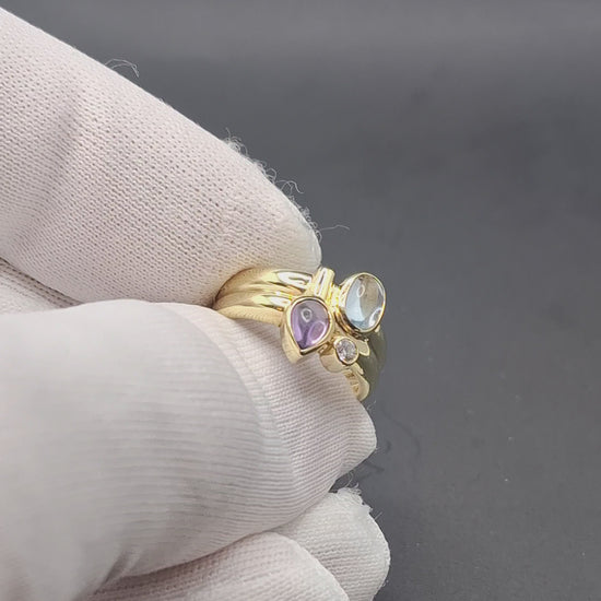 Multistein Gold Damenring mit Topas, Amethyst und Zirkonia. Der Ring ist aus 333er 8 karat Gelbgold gefertigt.