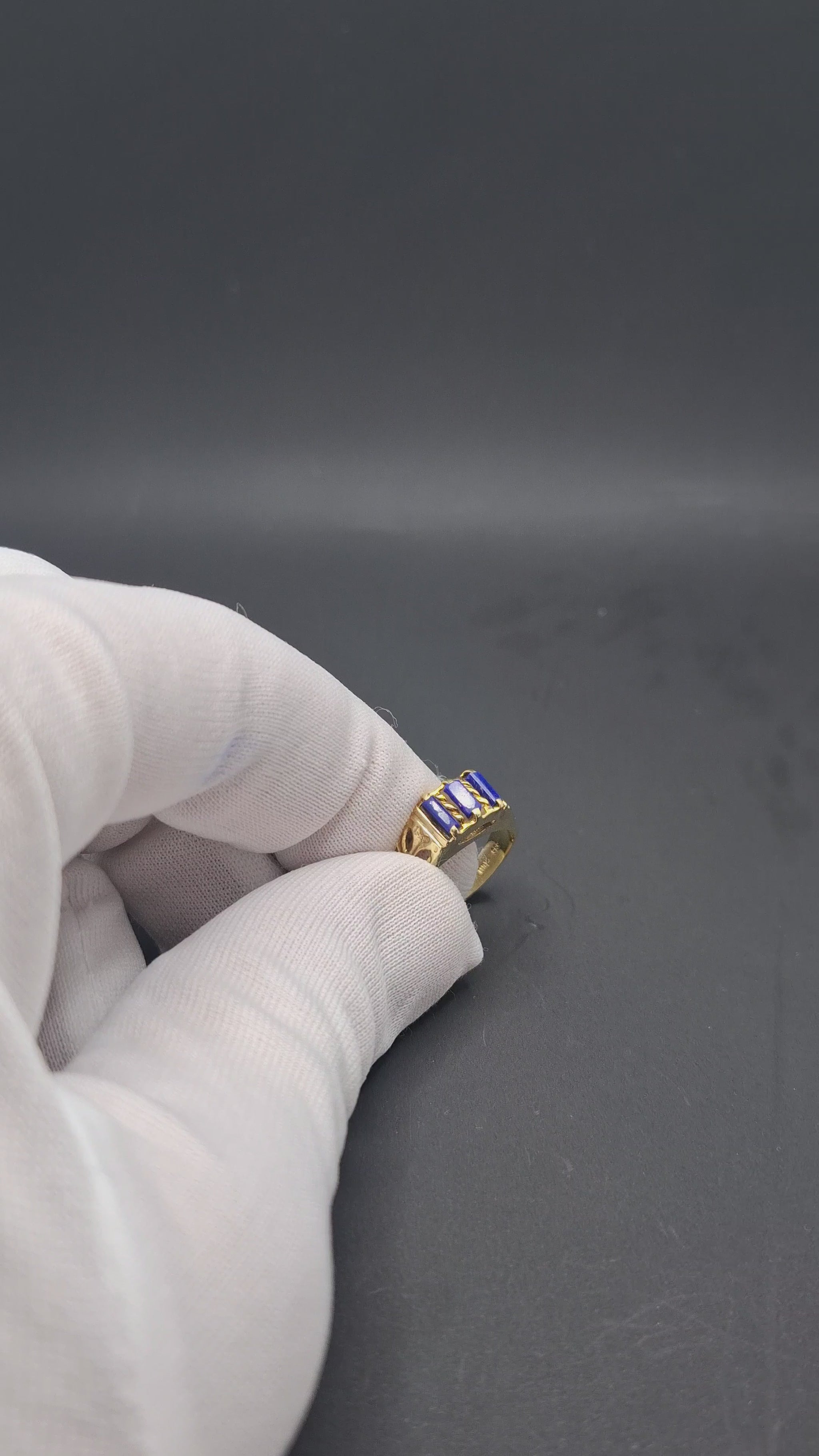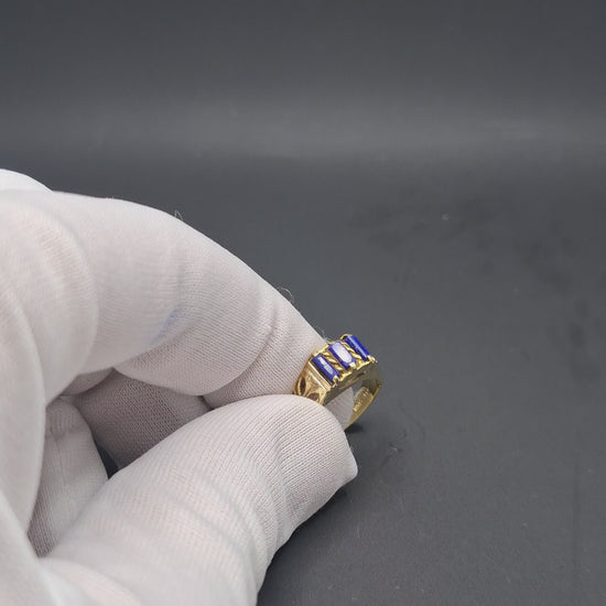 Vintage Gold Siegelring mit drei Lapislazuli Steinen. Das Schmuckstück ist aus 585er 14 karat Gelbgold gefertigt.