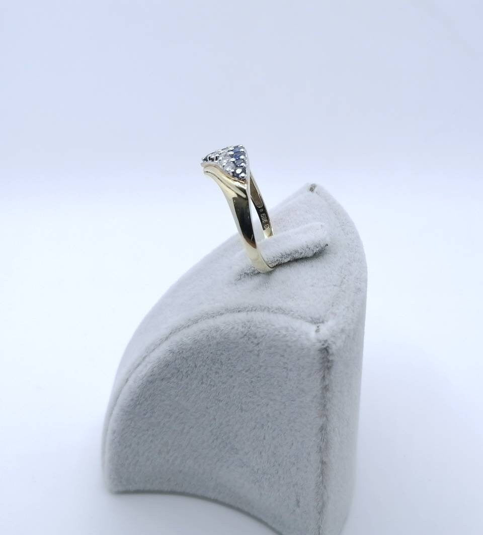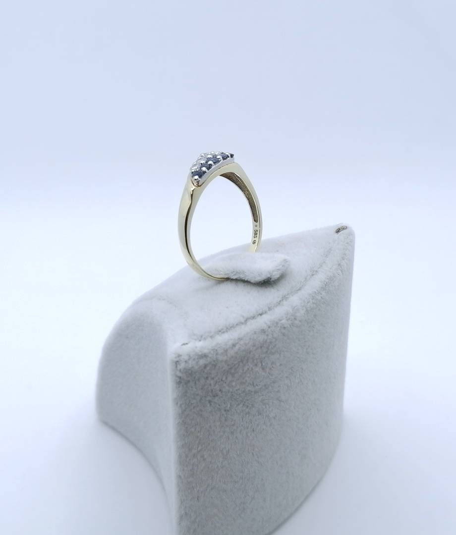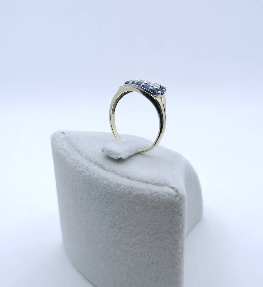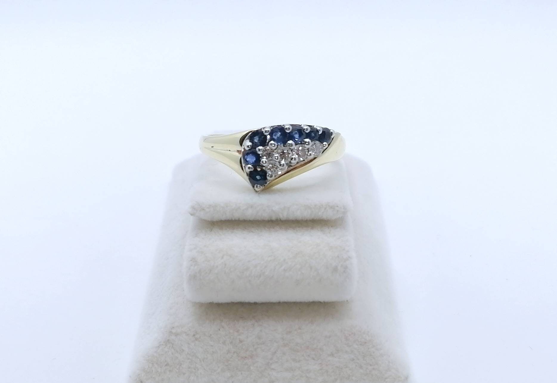 Traumhafter Gold Damenring mit funkelnden Brillanten und Saphir Edelsteinen. Der Ring ist aus 585er 14 karat Gold gefertigt.
