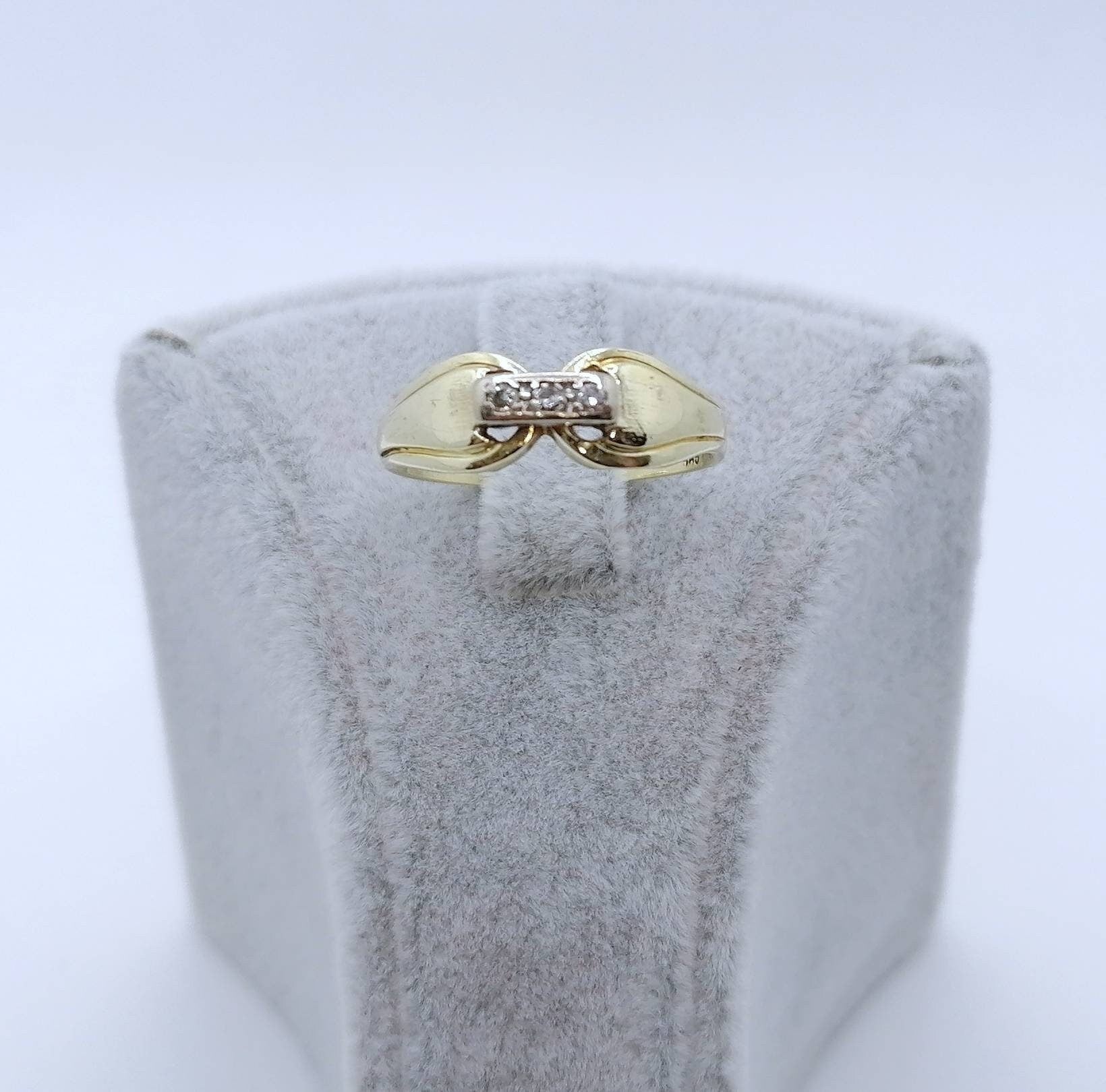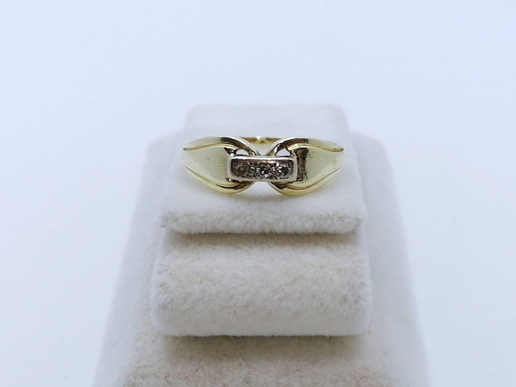 Vintage Gold Damenring mit drei funkelnden Diamanten.