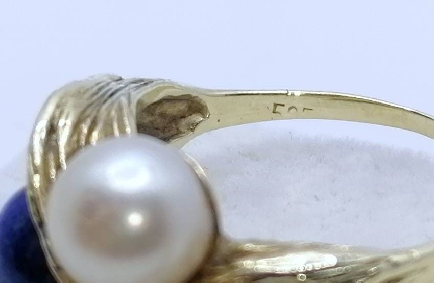 Vintage Ring Gold 585er mit Lapislazuli und Perle