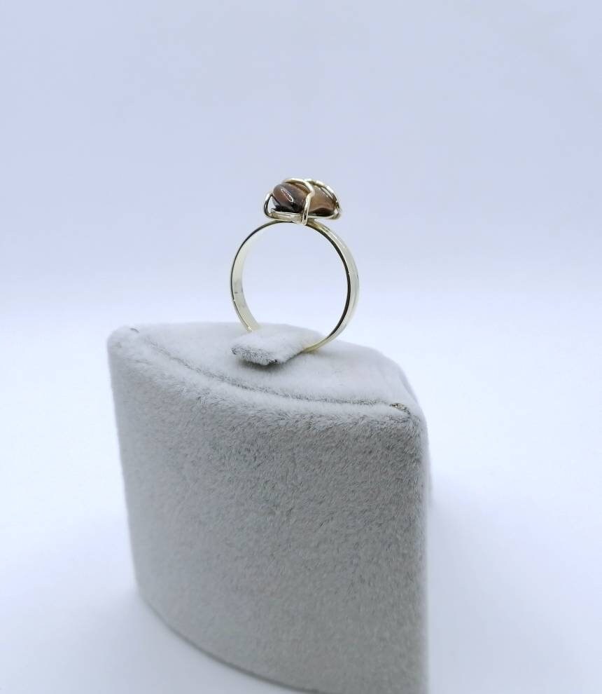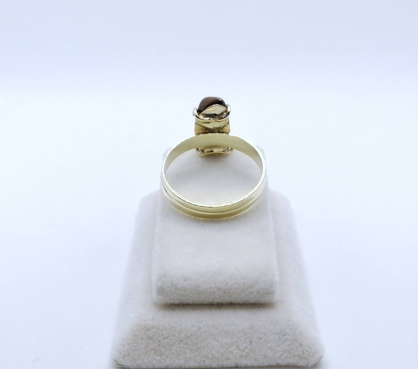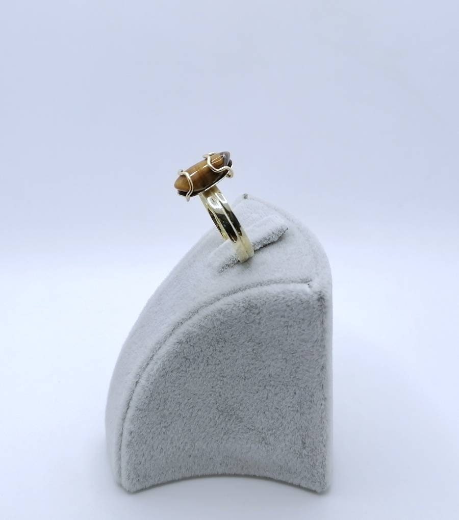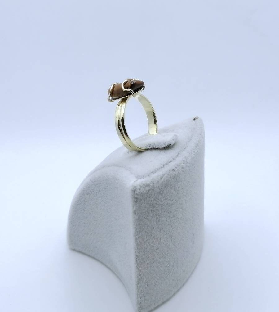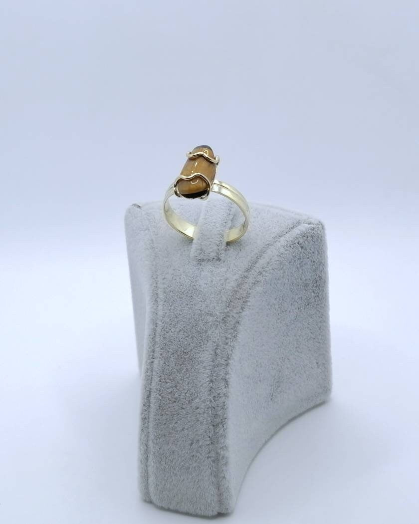 Handgefertigter Gold Damenring mit einem Tigerauge. Der Ring ist aus 585er 14 karat Gold gefertigt und wartet gespannt auf seine neue Besitzerin.