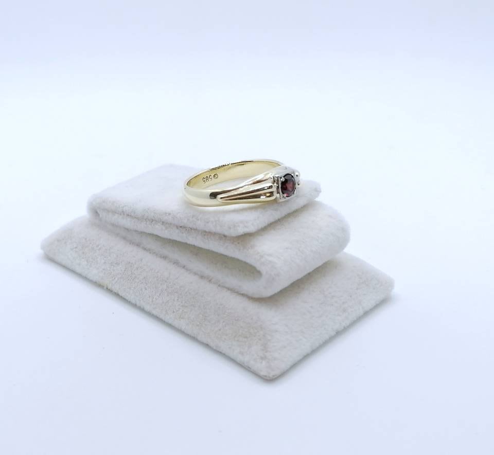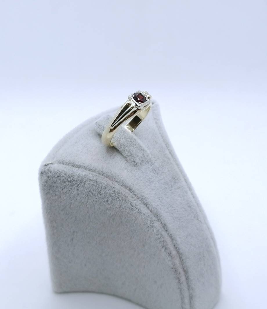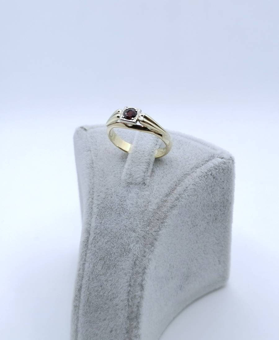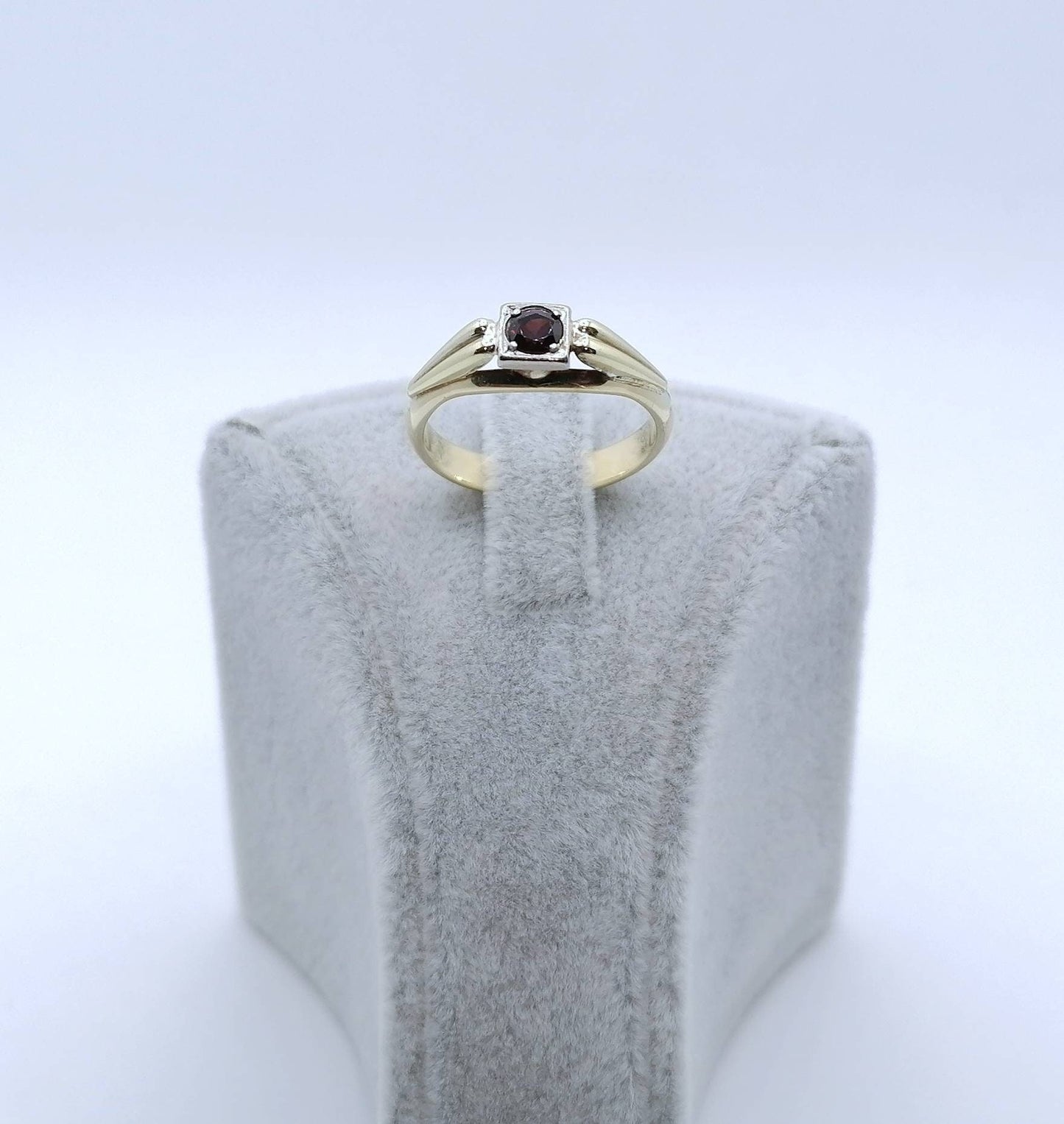 Goldring mit einem Granatstein. Das Schmuckstück ist aus 585er 14 Karat Gold gefertigt.