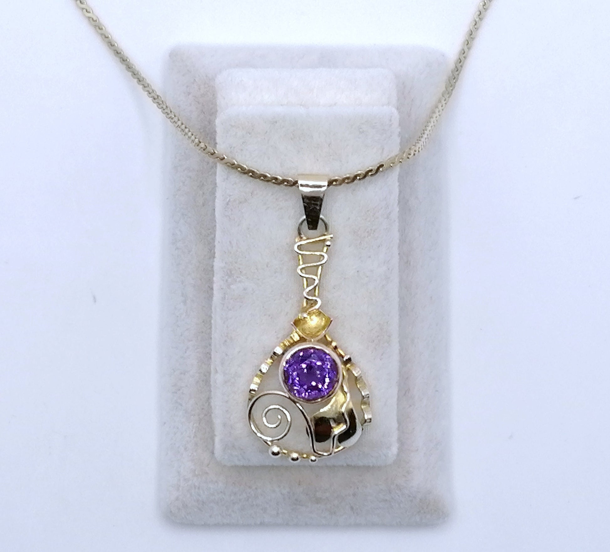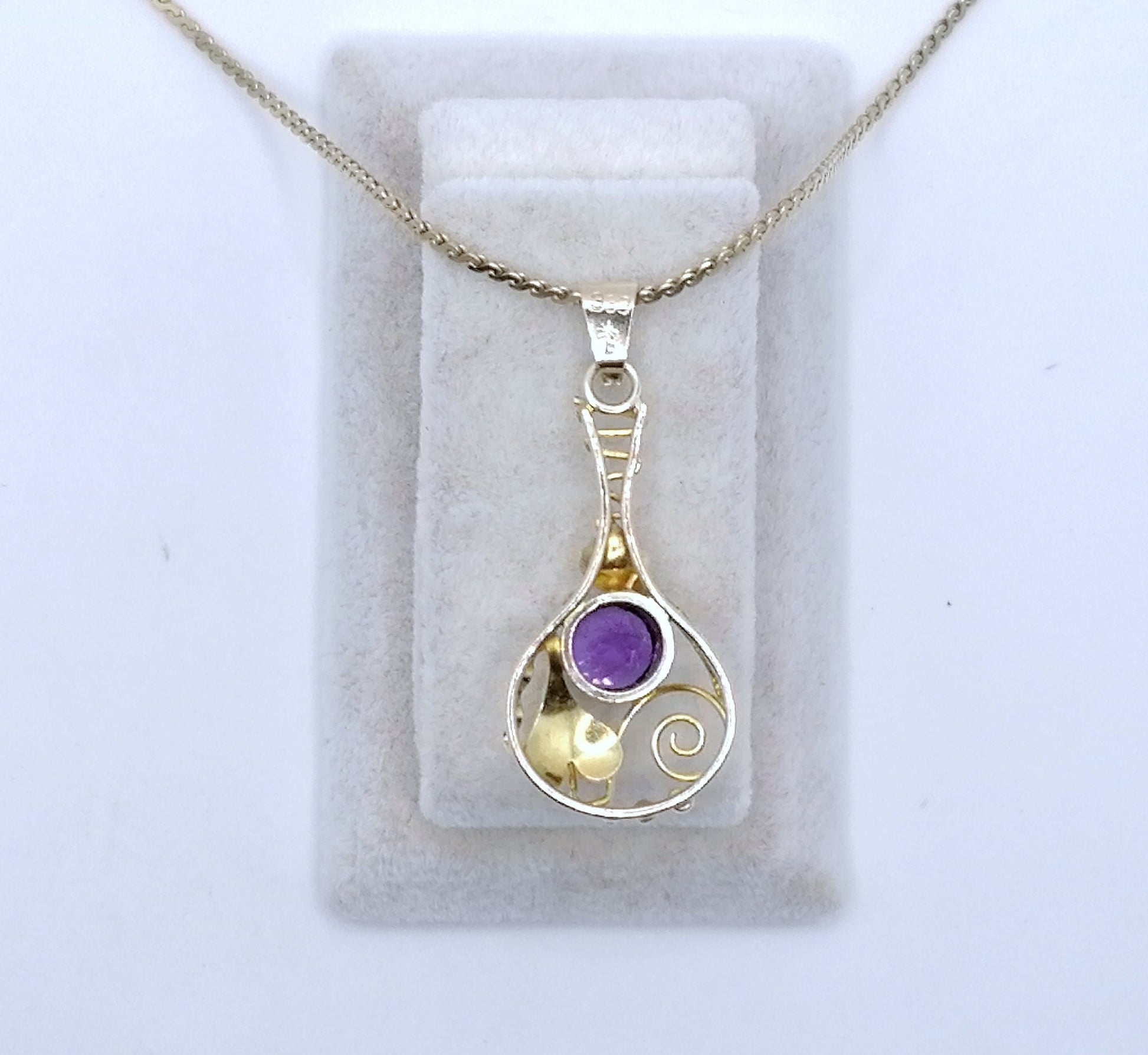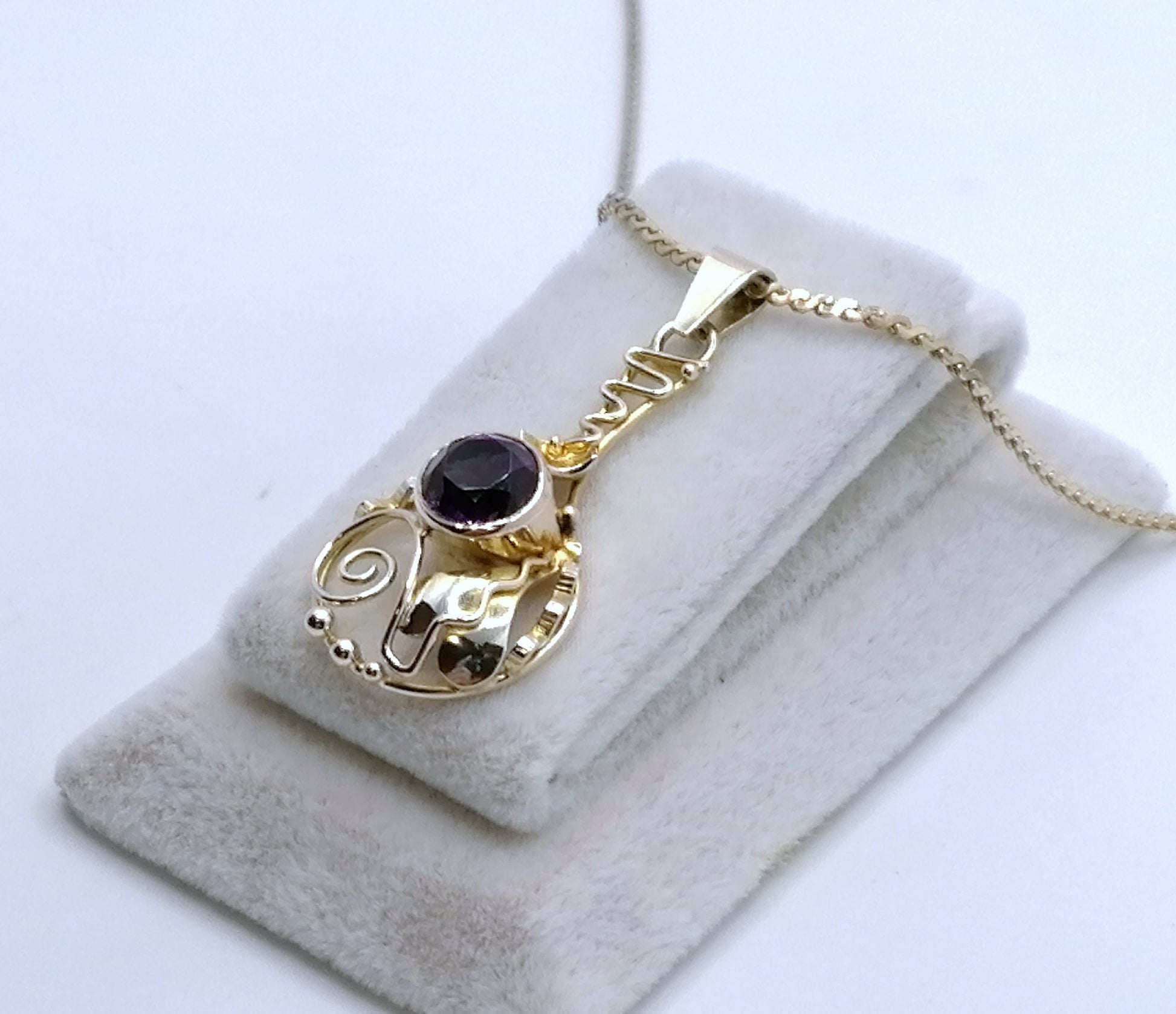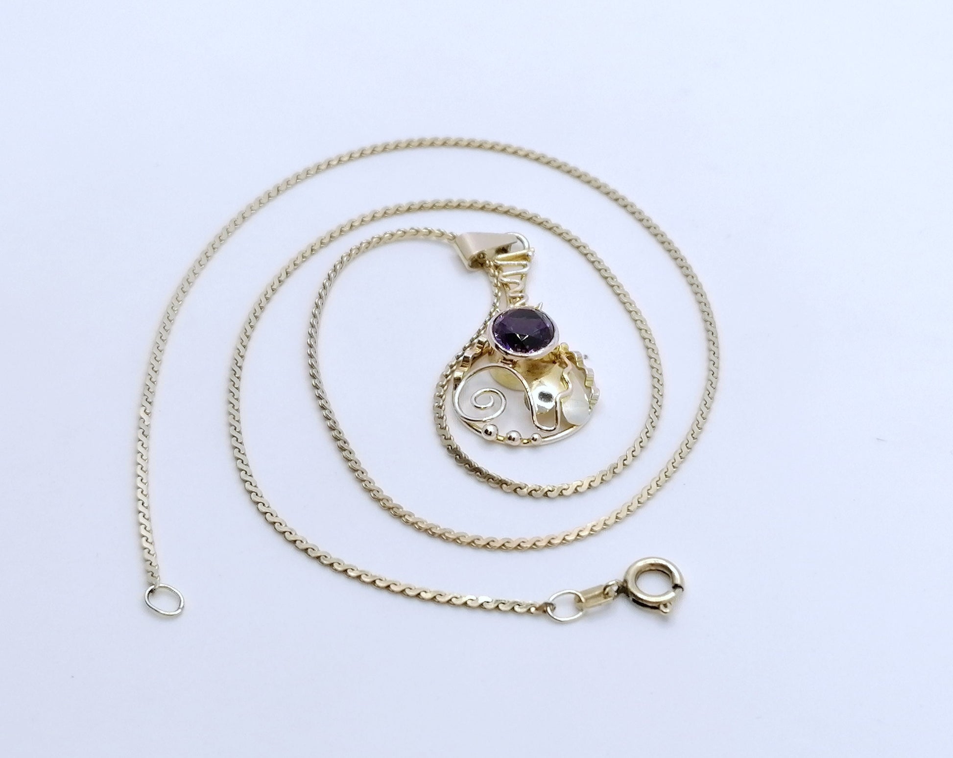 Gold Halskette mit einem Amethyst Anhänger. Sowohl die Kette als auch der Anhänger sind aus 333er 8 karat Gold gefertigt.