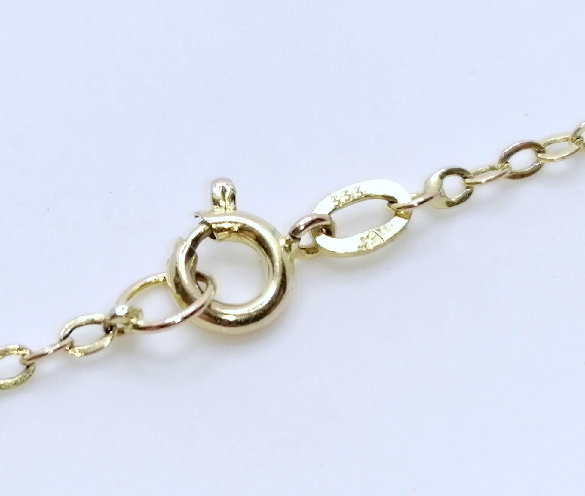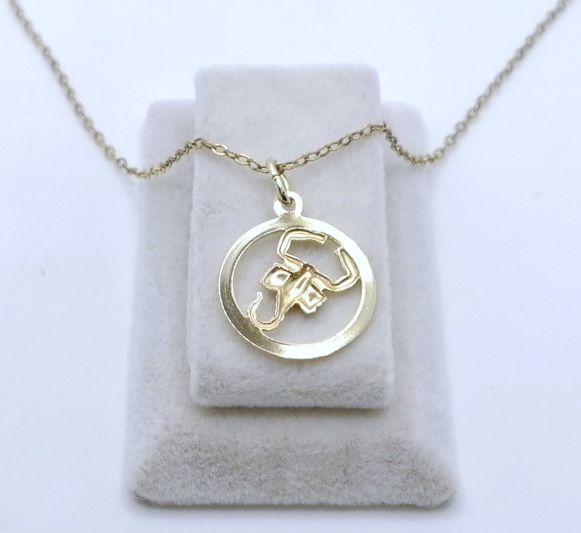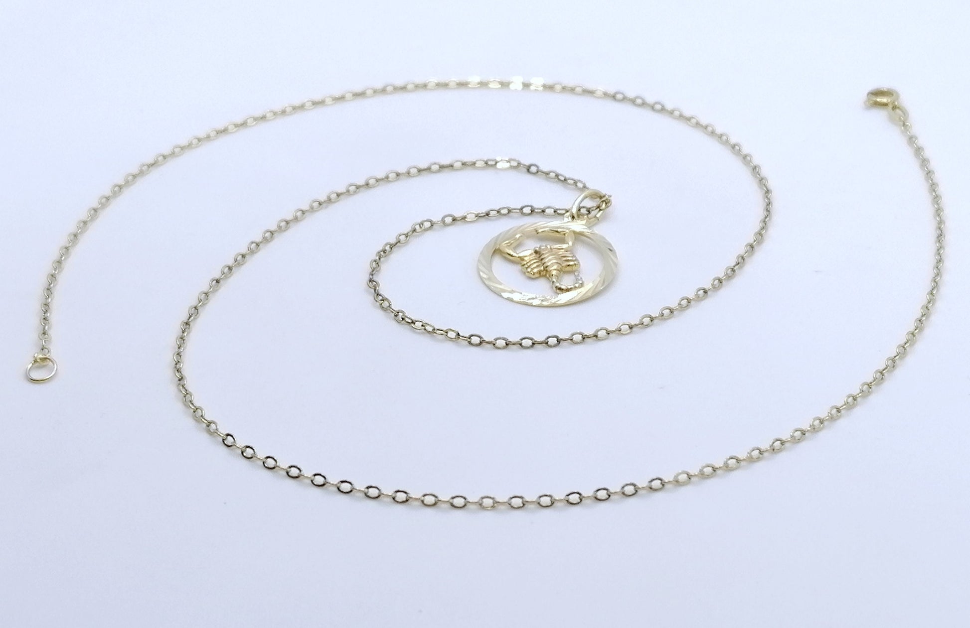 Gold Halskette mit einem Sternzeichen Skorpion Anhänger. Sowohl die Kette als auch der Anhänger sind aus 333er 8 Karat Gold gefertigt.