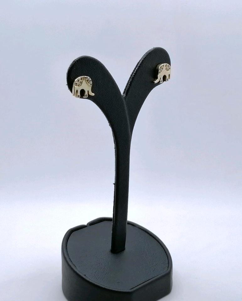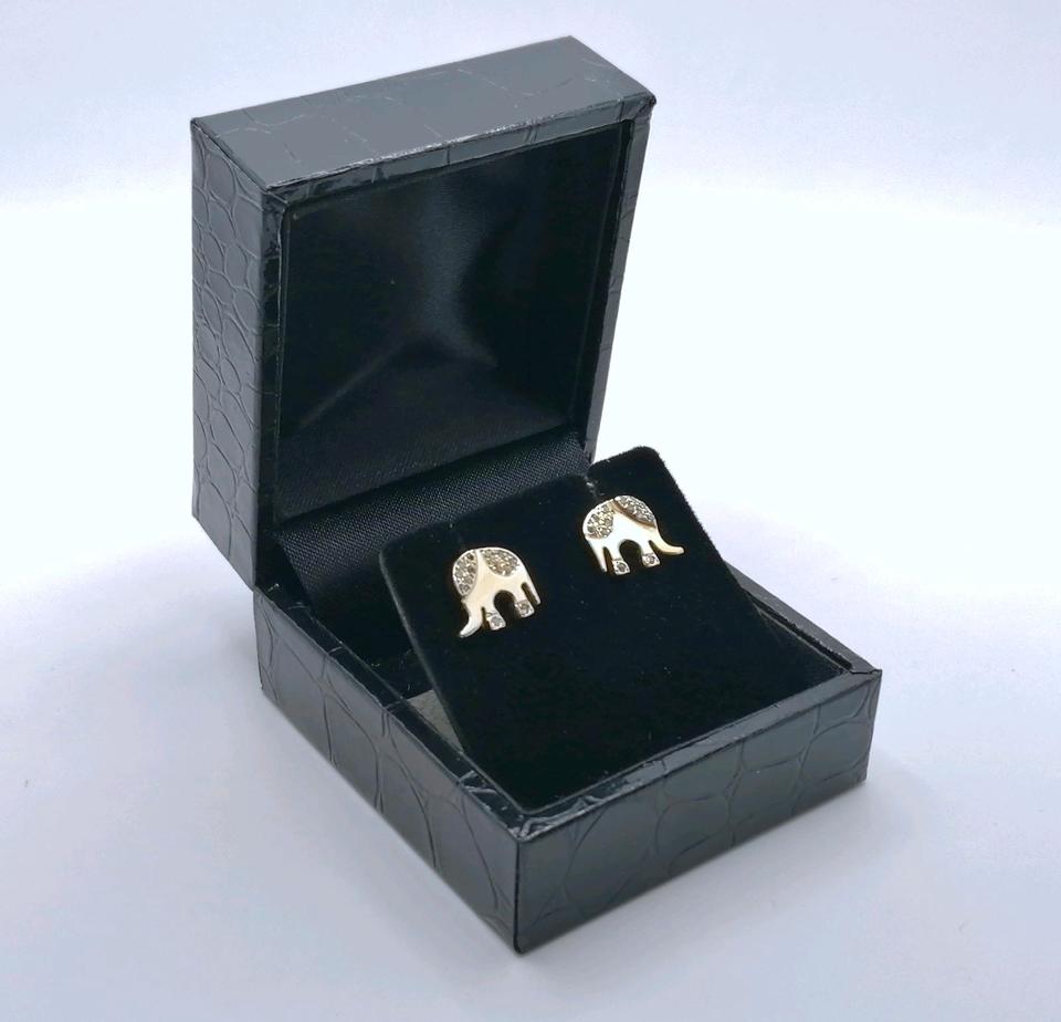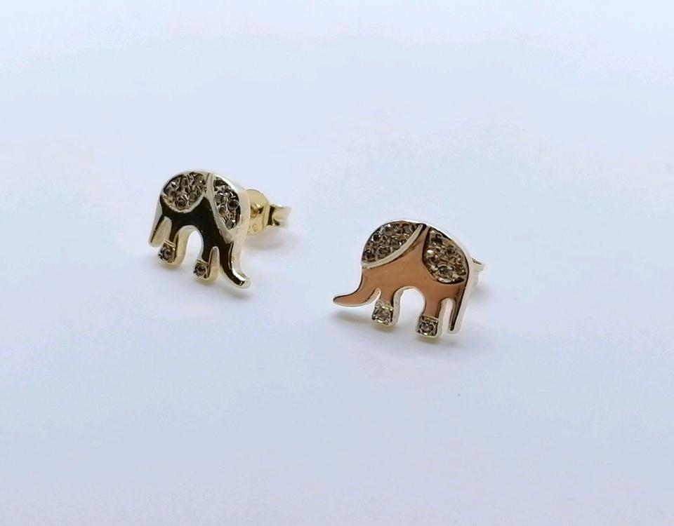 Neuwertige Gold Ohrstecker in Elephanten Form mit funkelnden Zirkonia. Die Ohrringe sind aus 333er 8 karat Gelbgold gefertigt.