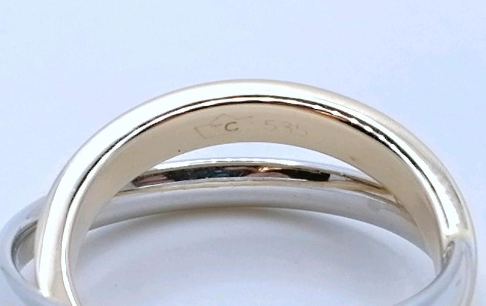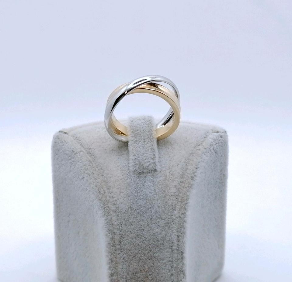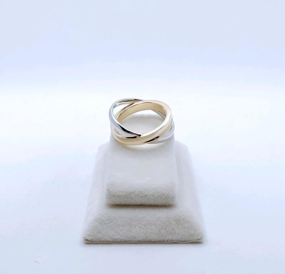 Neuwertiger Bicolor Gelbgold Weißgold Damenring. Das Schmuckstück ist aus 585er 14 Karat Gelbgold gefertigt.