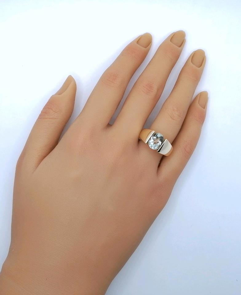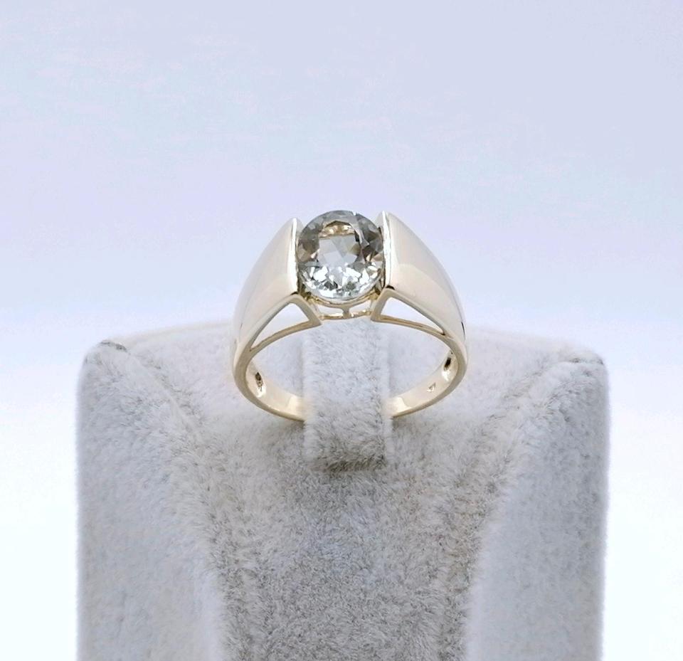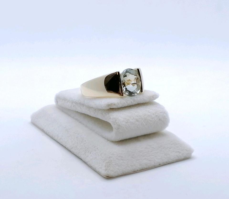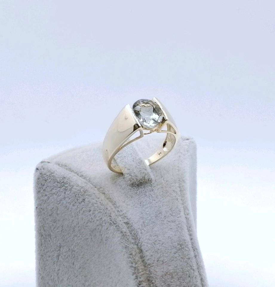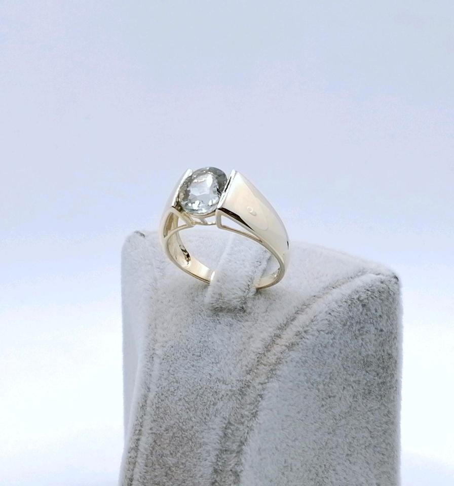 Neuwertiger Gold Damenring mit Aquamarin, 375er Goldring Gr. 63