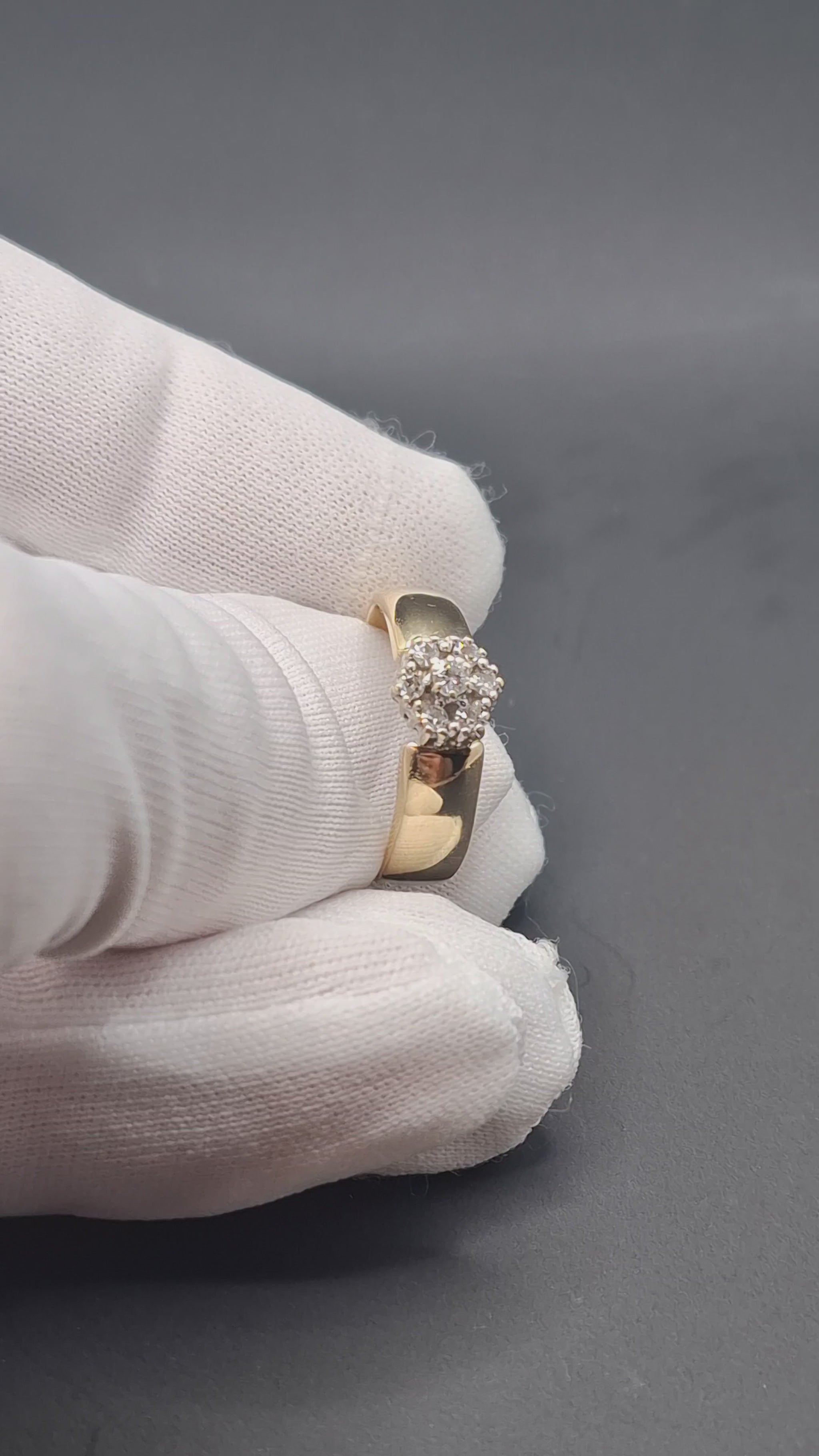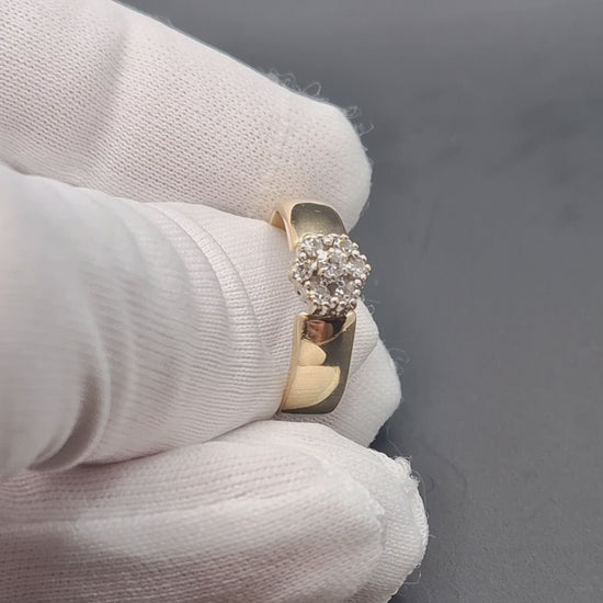 Gold Damenring mit funkelnden Diamanten. Der Ring ist aus 585er 14 karat Gelbgold gefertigt.