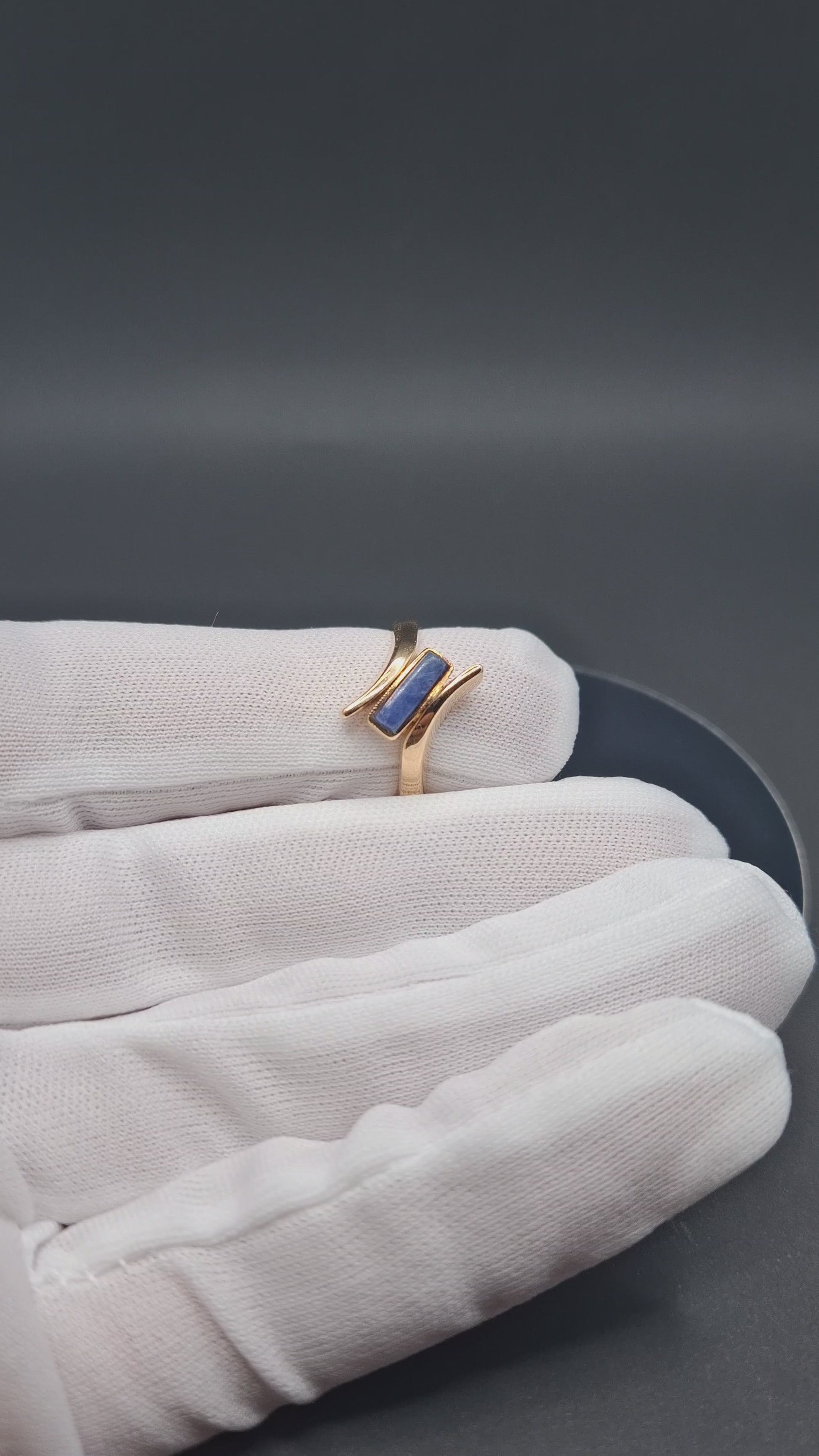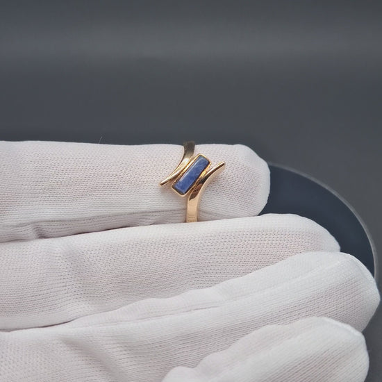 Neuwertiger Gold Damenring mit einem Lapislazuli. Das Schmuckstück ist aus 750er 18 Karat Gelbgold gefertigt.