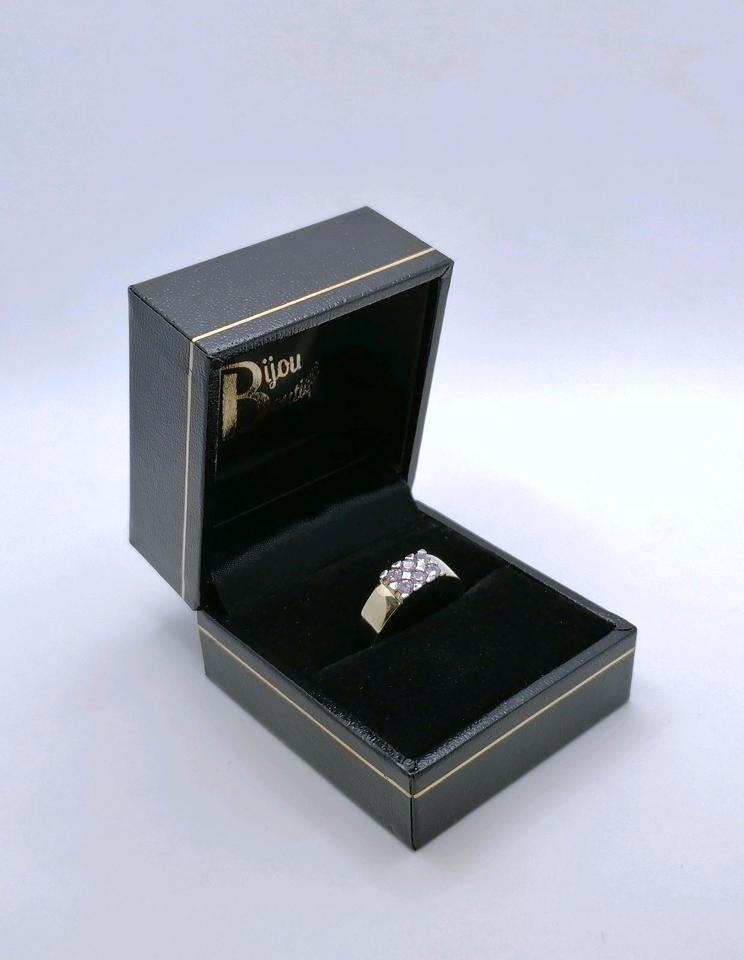 Neuwertiger Gold Bandring mit Pinken Zirkonia. Das Schmuckstück ist aus aus 333er 8 karat Gelbgold gefertigt.