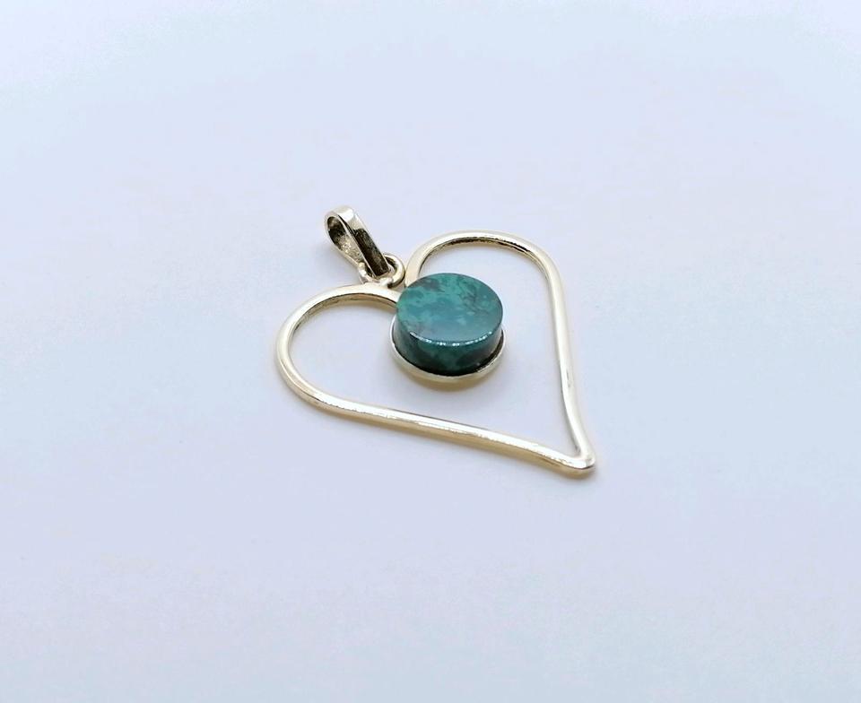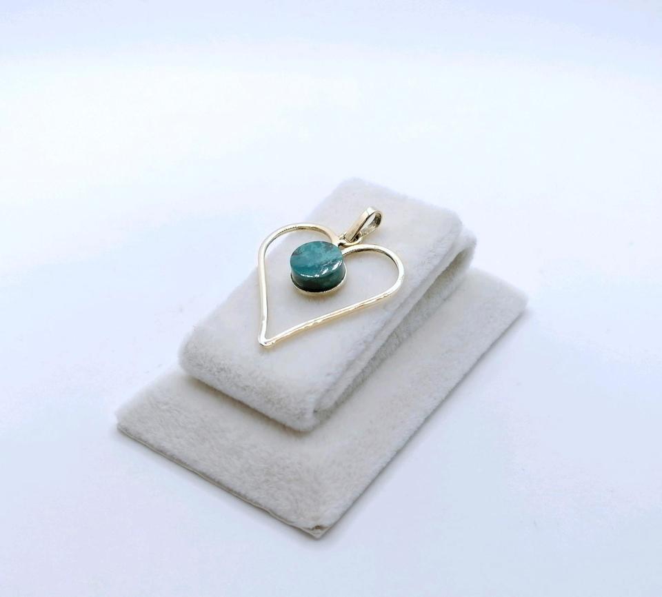 Neuwertiger Gold Halsketten Anhänger mit einem Malachit. Der Anhänger ist aus 585er 14 Karat Gelbgold gefertigt.
