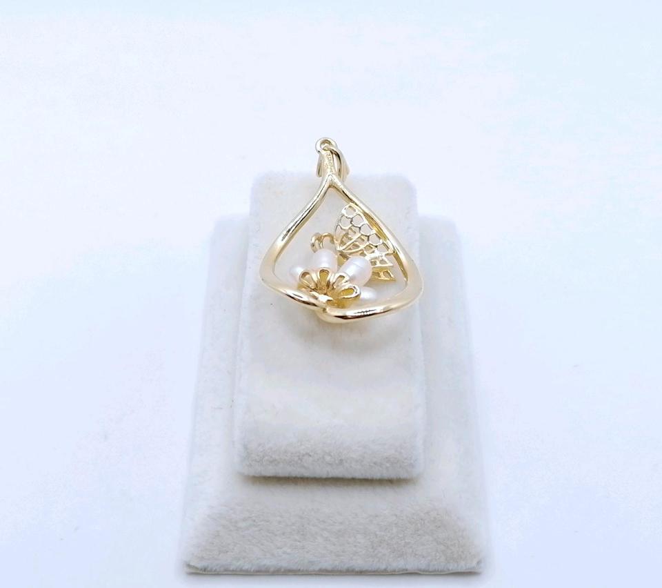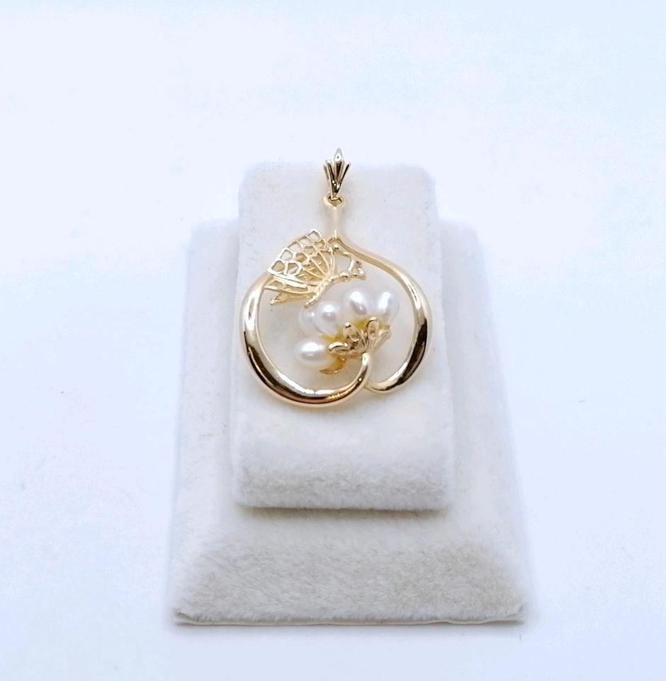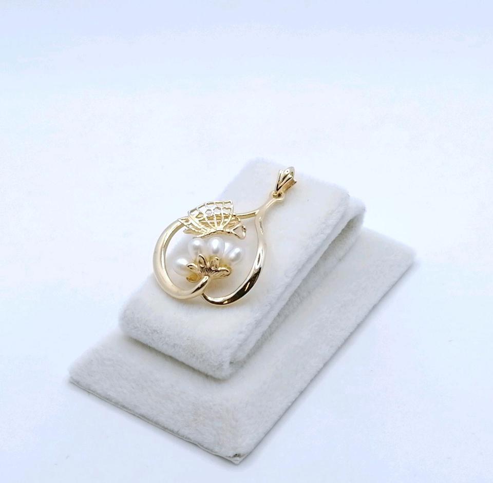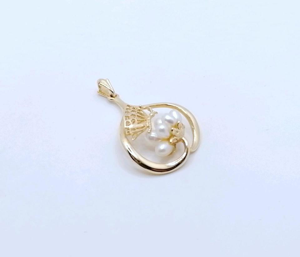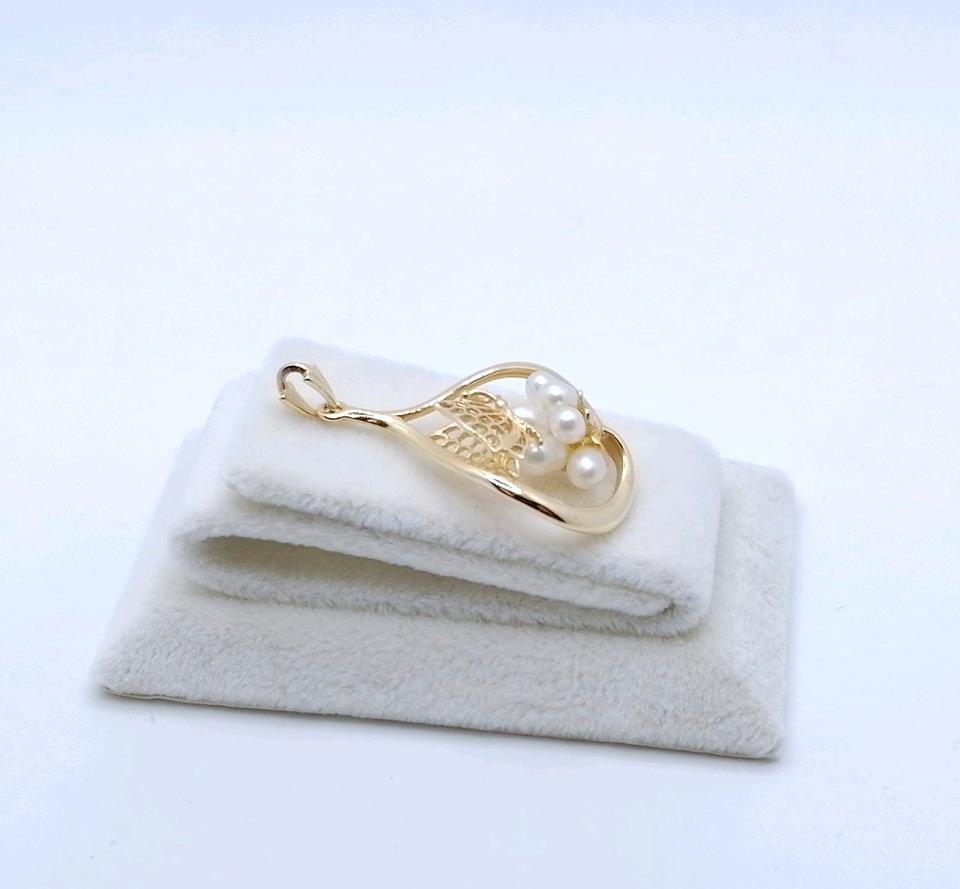 Neuwertiger Gold Halsketten Anhänger mit Perlen. Der Anhänger ist aus 585er 14 Karat Gelbgold gefertigt.