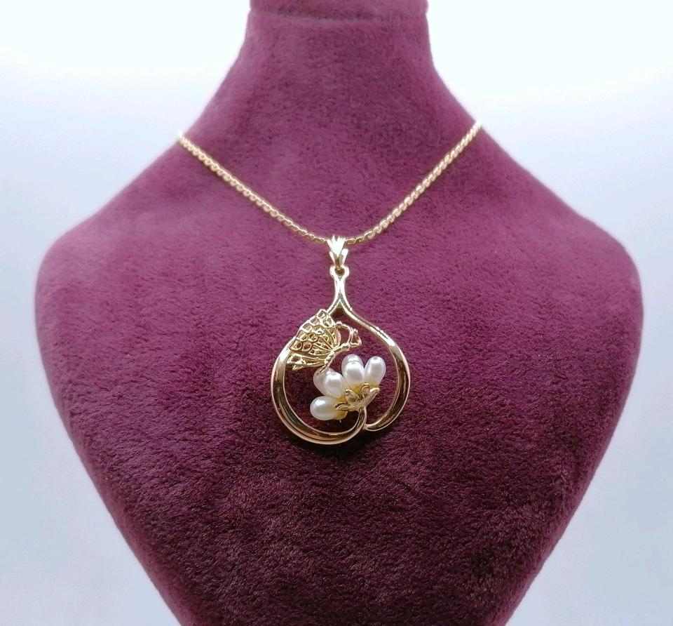 Neuwertiger Gold Halsketten Anhänger mit Perlen 585er Gelbgold