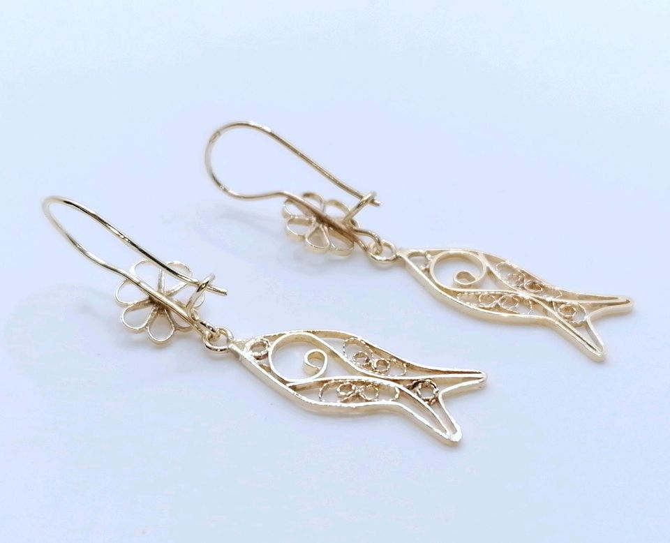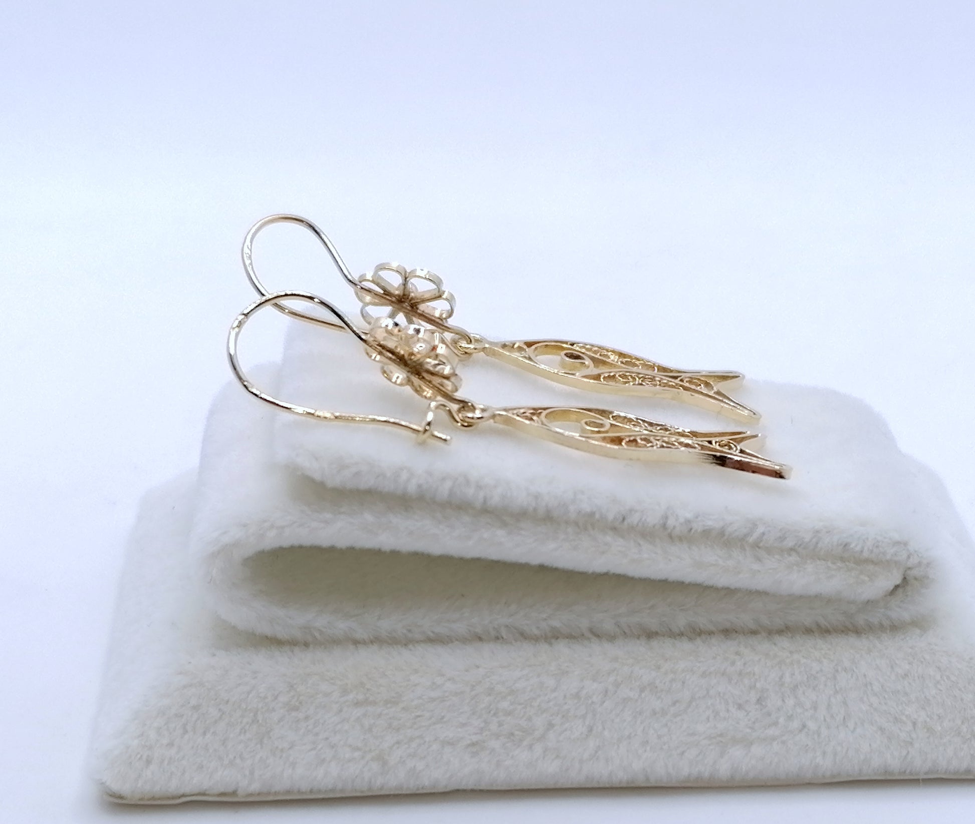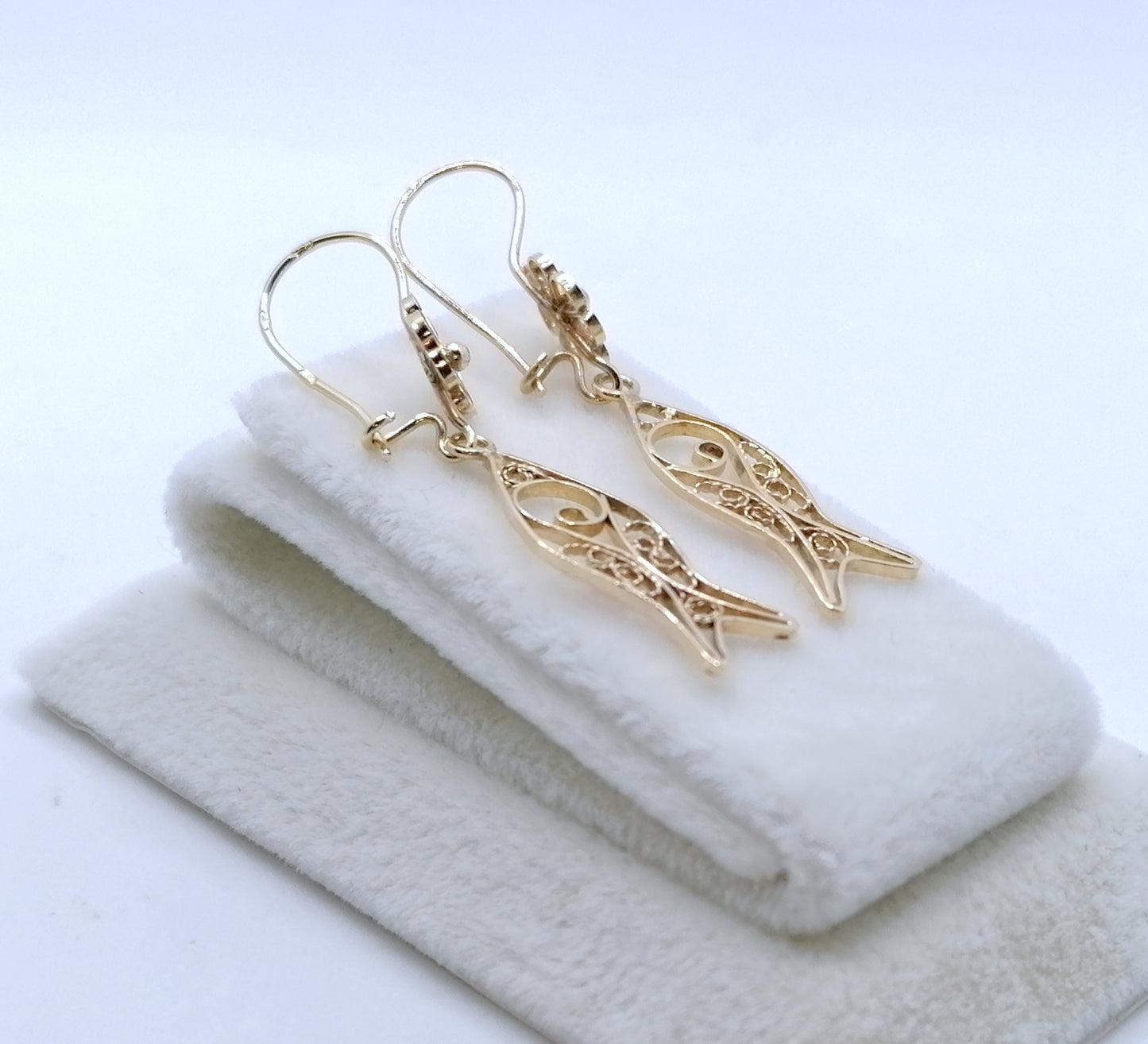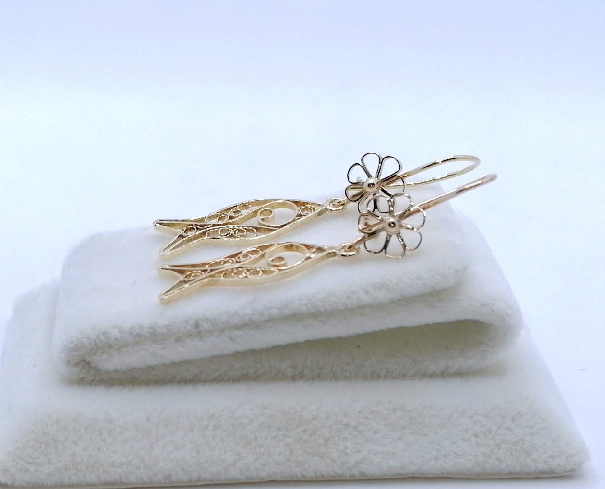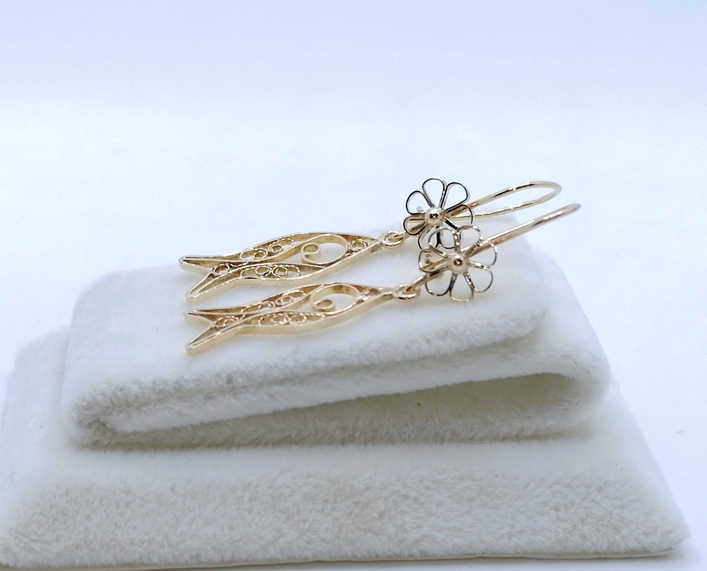 Filigrane Gold Ohrhänger. Die Ohrringe sind aus 585er 14 karat Gold gefertigt.