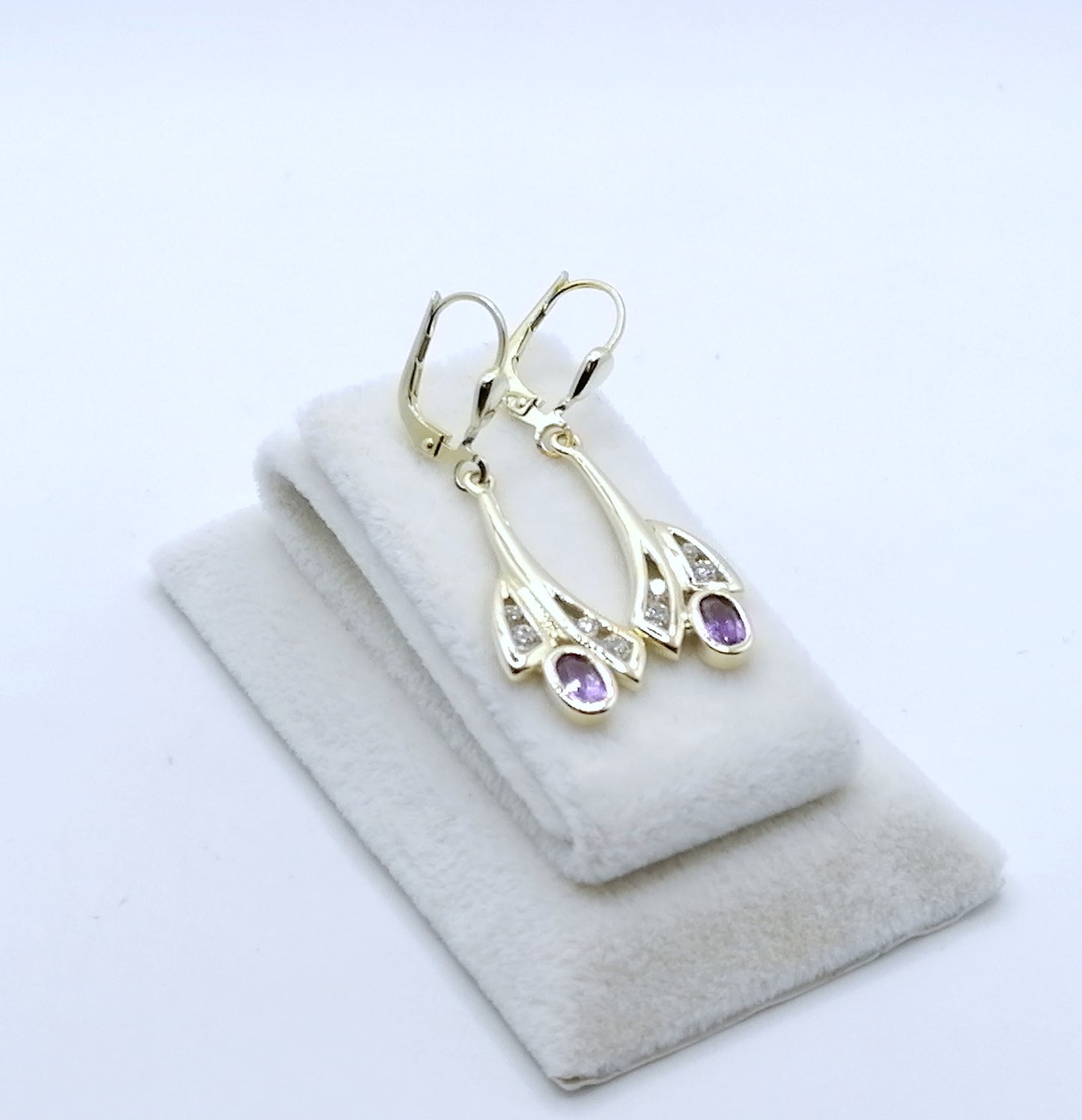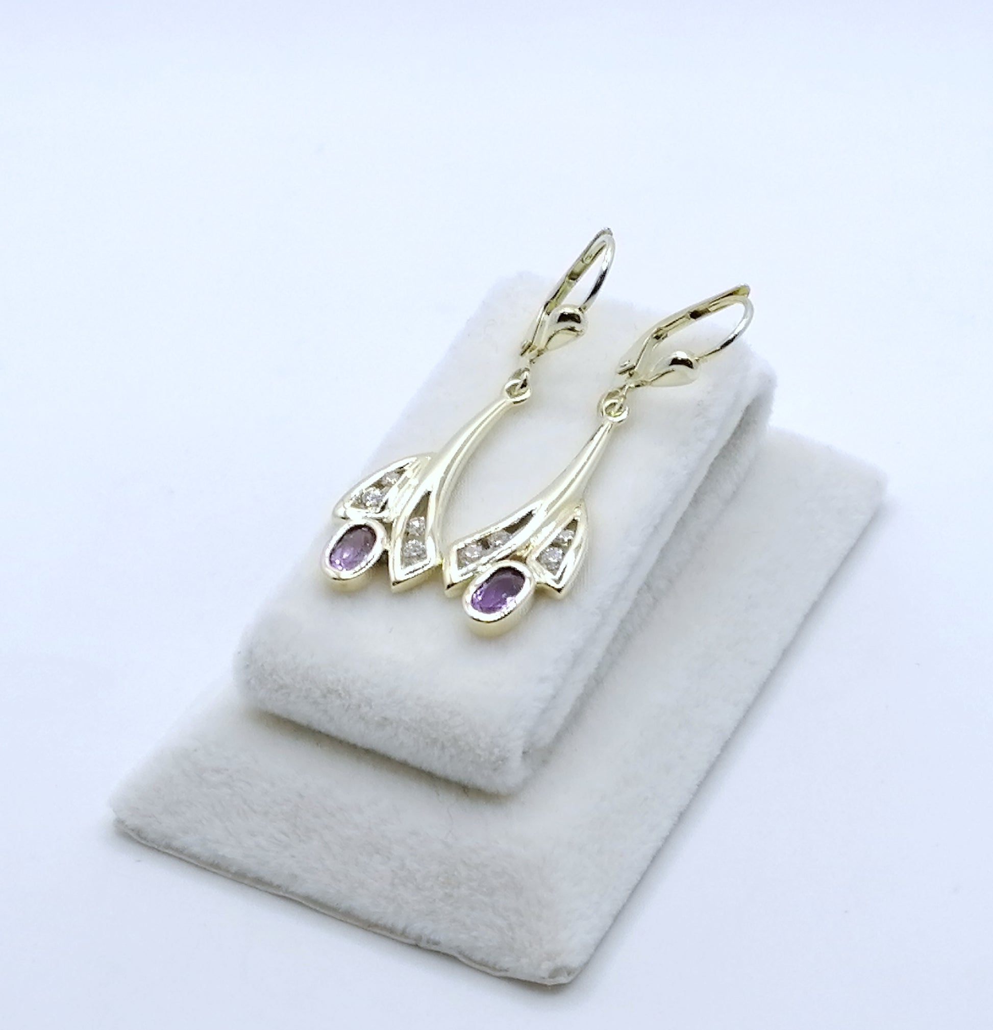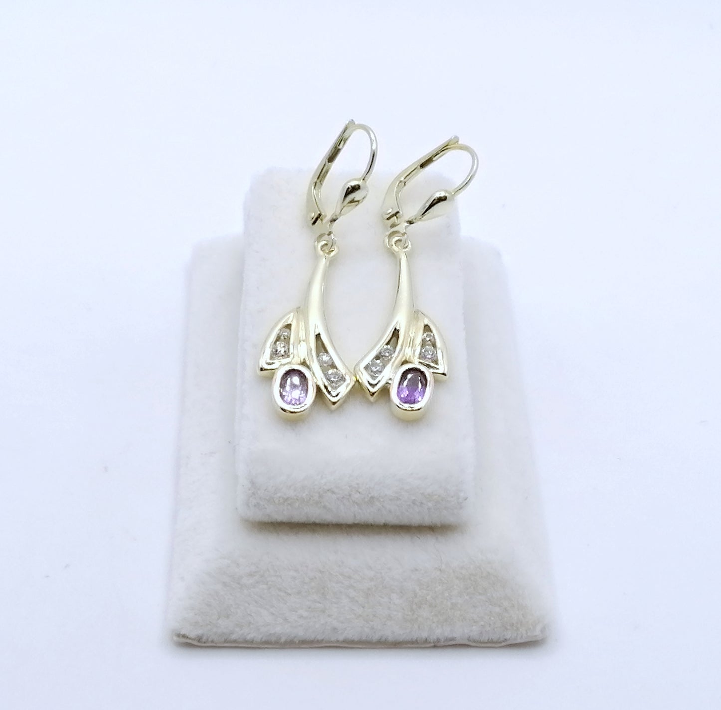 Neuwertige Gold Ohrhänger mit Amethysten und Zirkonia. Die Ohrringe sind aus 585er 14 karat Gold gefertigt.