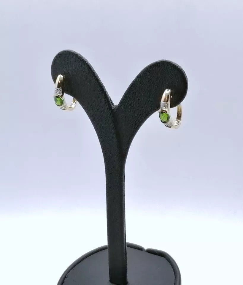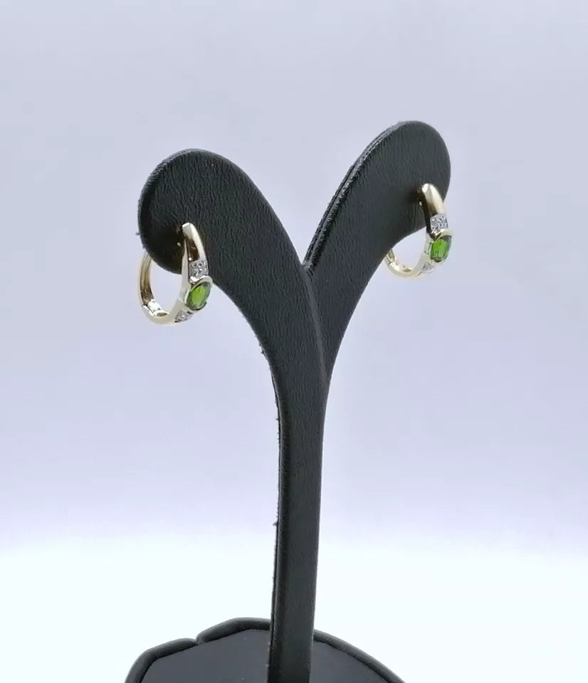 Neuwertige Gold Ohrringe mit je einem Diopsid und vier funkelnden Diamantsplitter. Die Ohrringe sind aus 585er 14 karat Gold gefertigt.