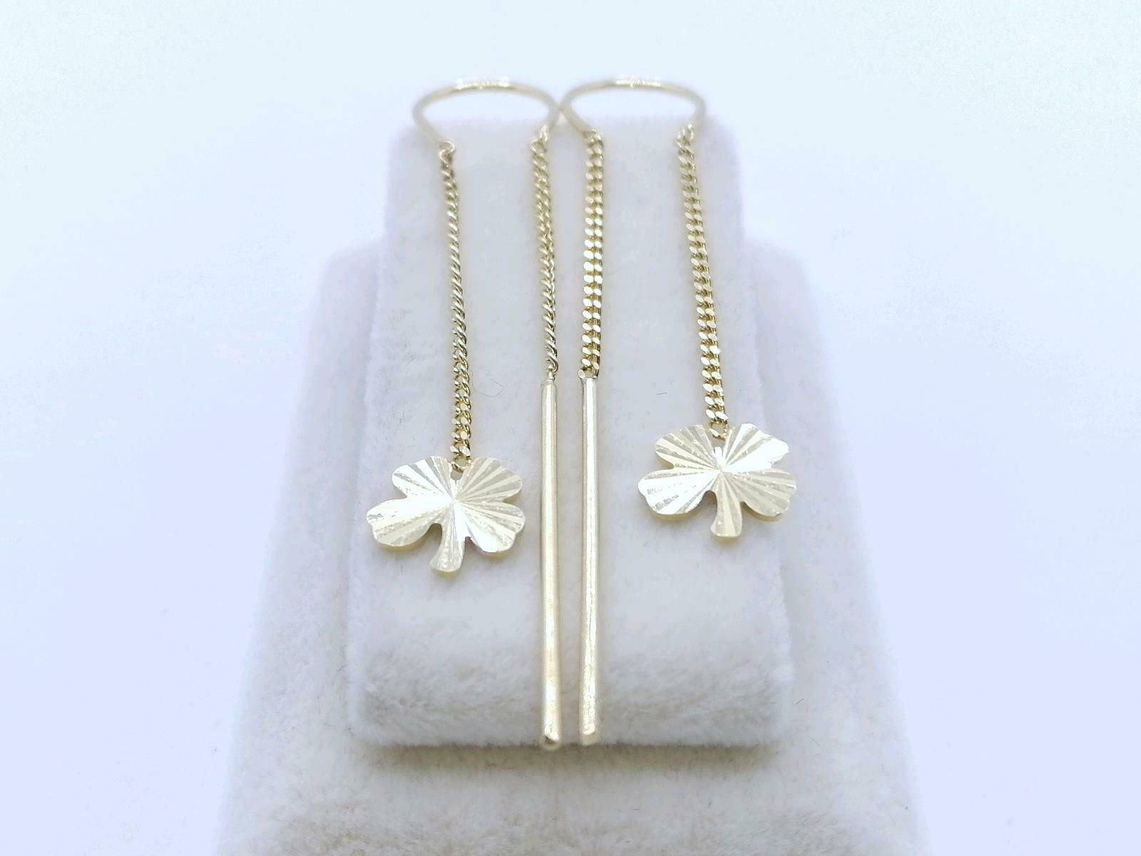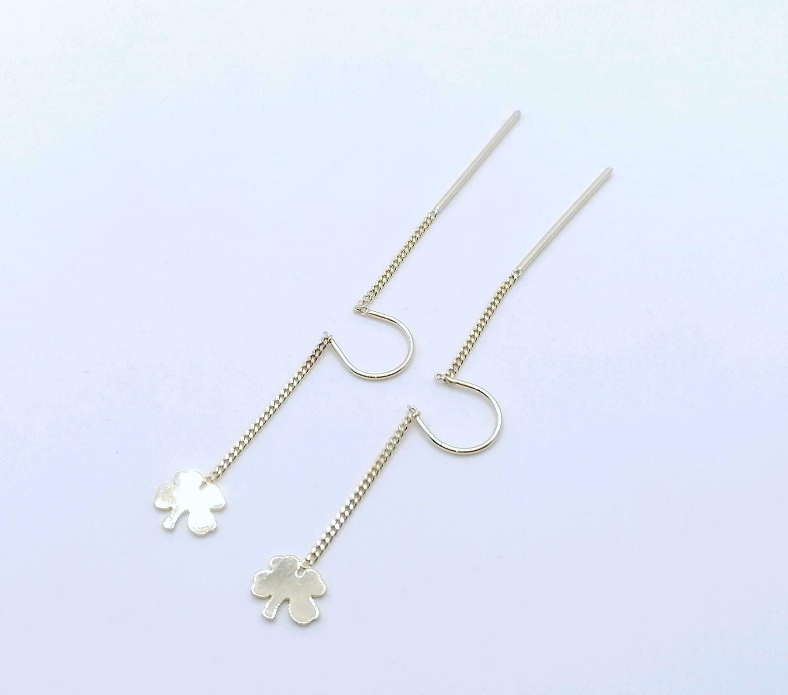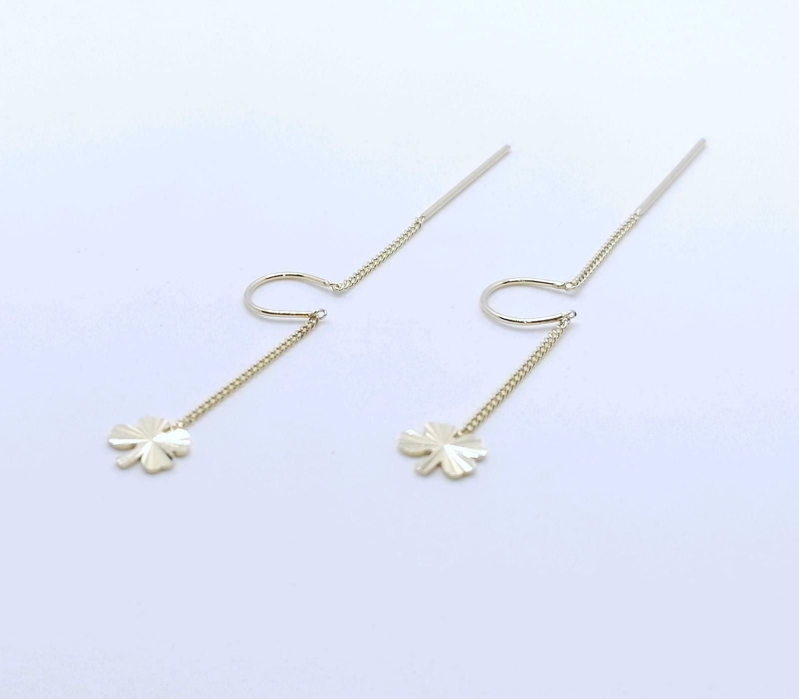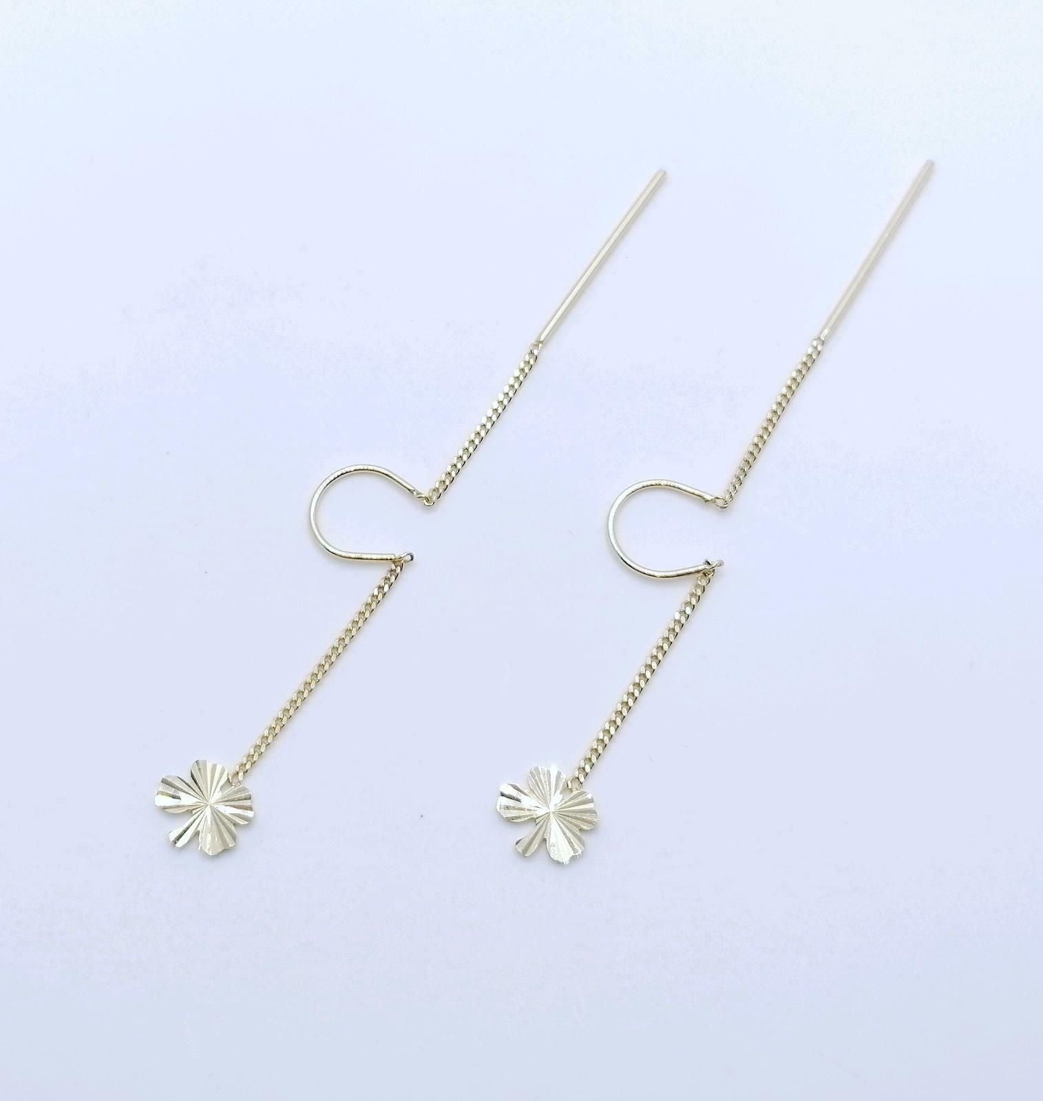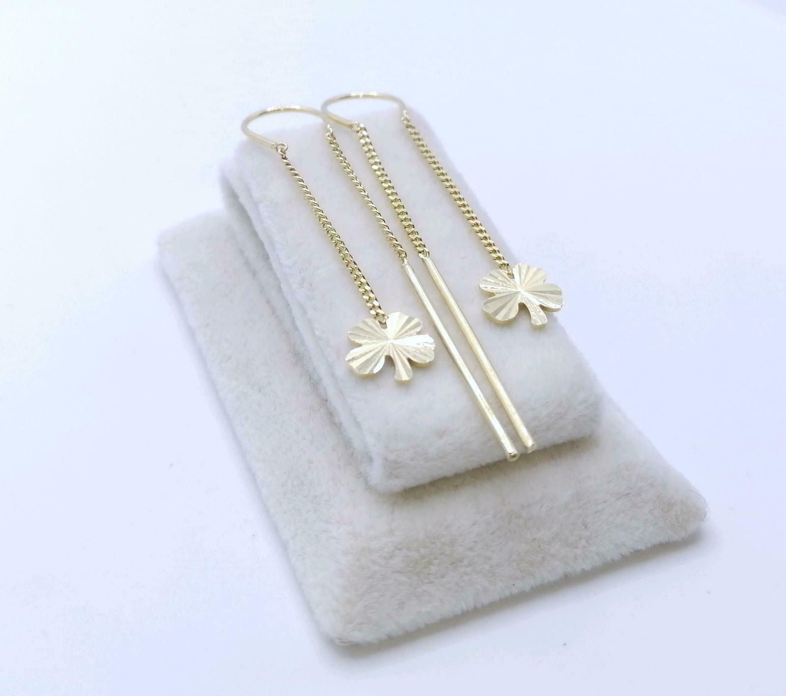 Doppel Loch Piercing, Kleeblatt 585er Gold Ohrringe, Ohr Kette