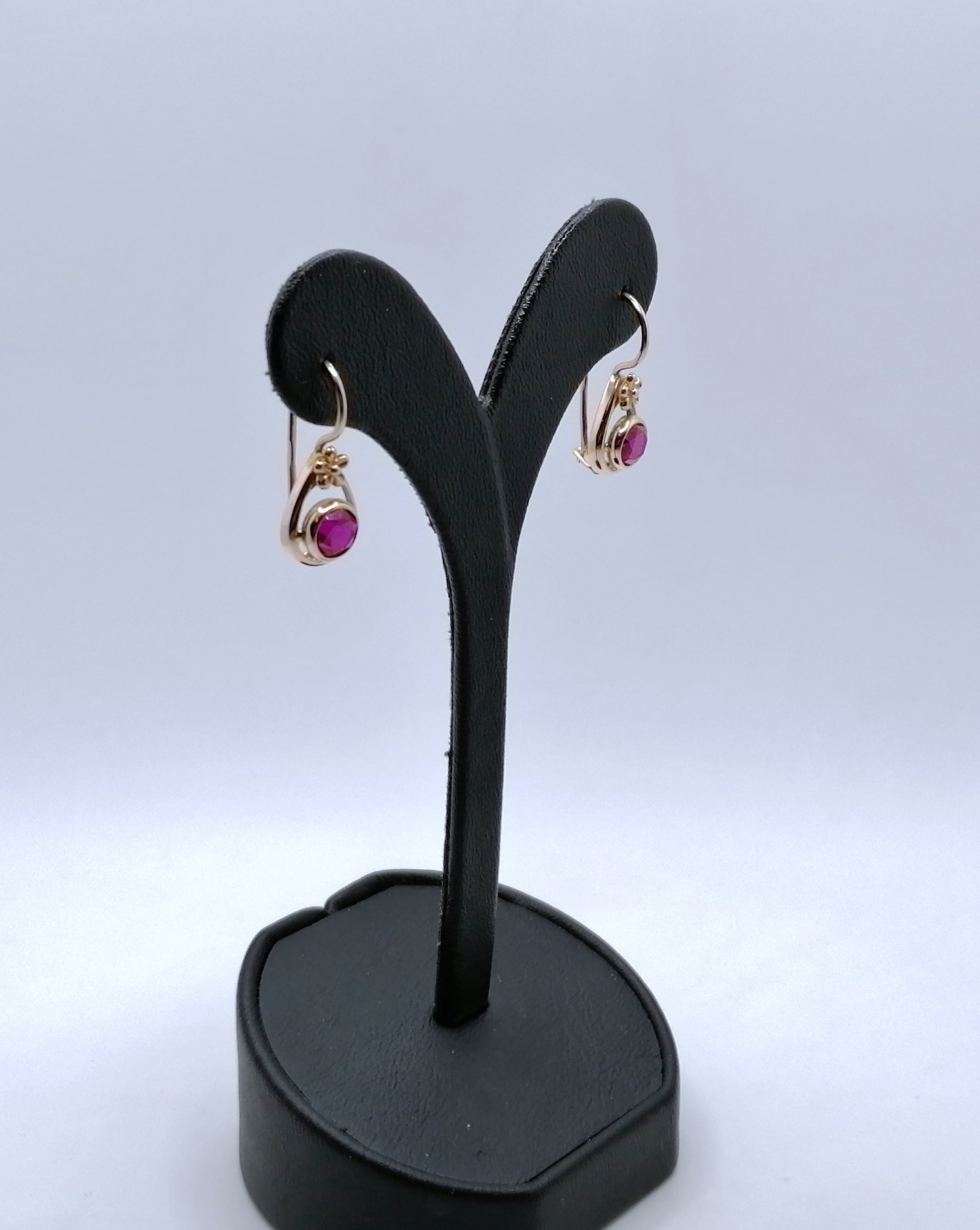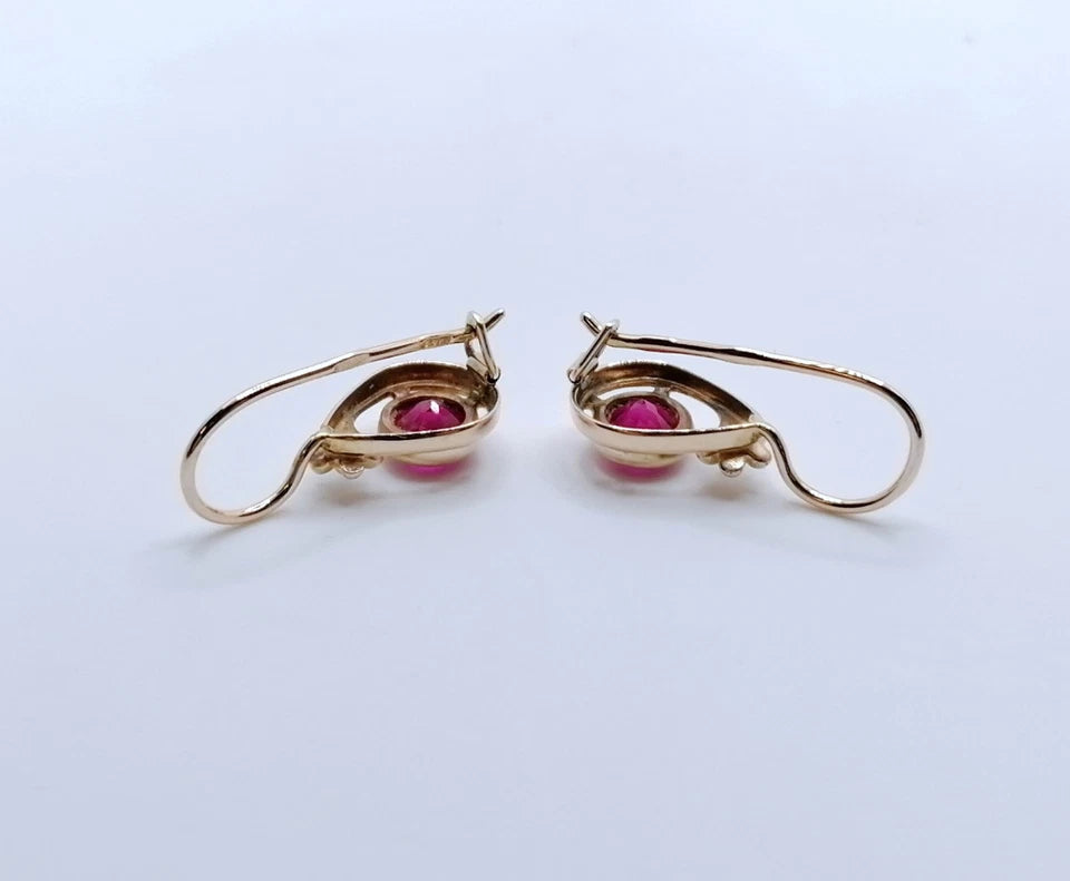 Ohrringe Gold 583er UdSSR Sowjet Ohrhänger mit Rubin