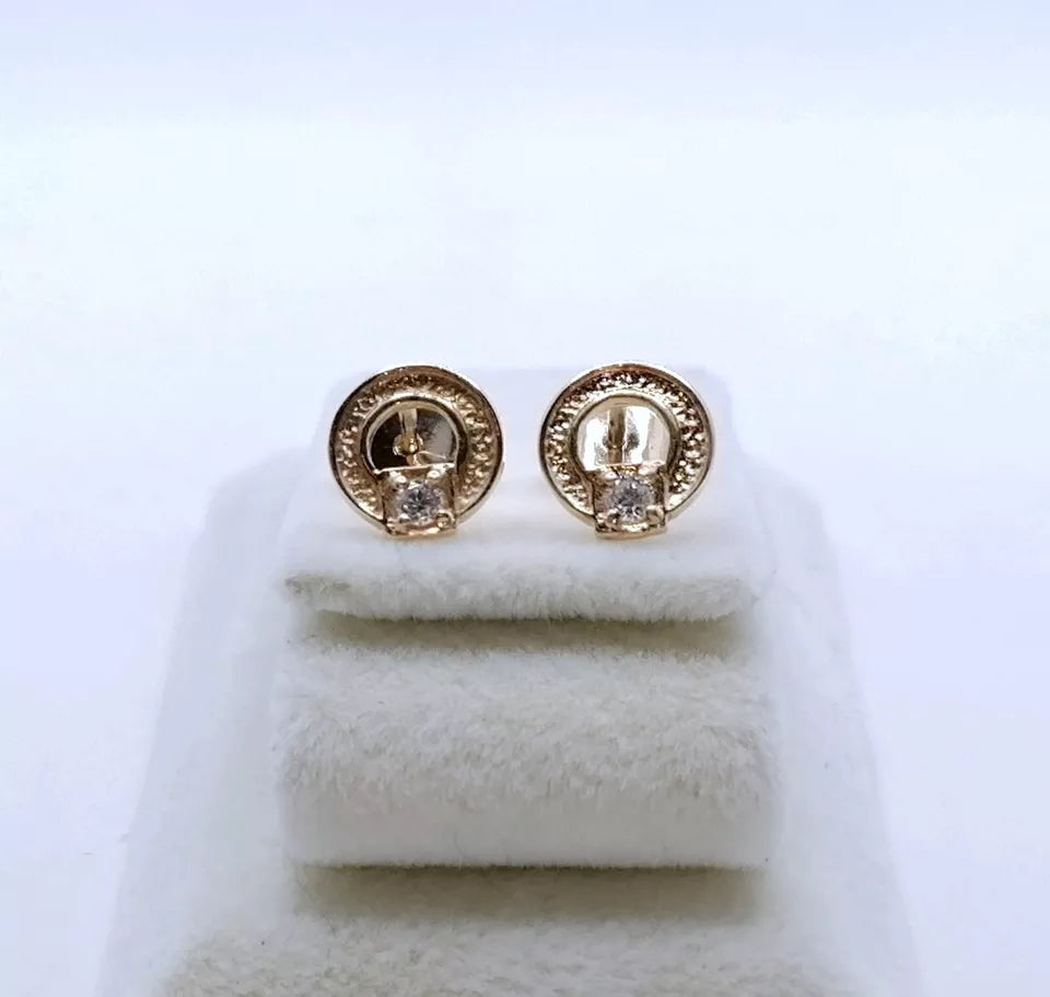 UdSSR Sowjet Rotgold Ohrringe mit funkelnden Zirkonia. Die Ohrstecker sind aus 583er 14 karat Gold gefertigt.