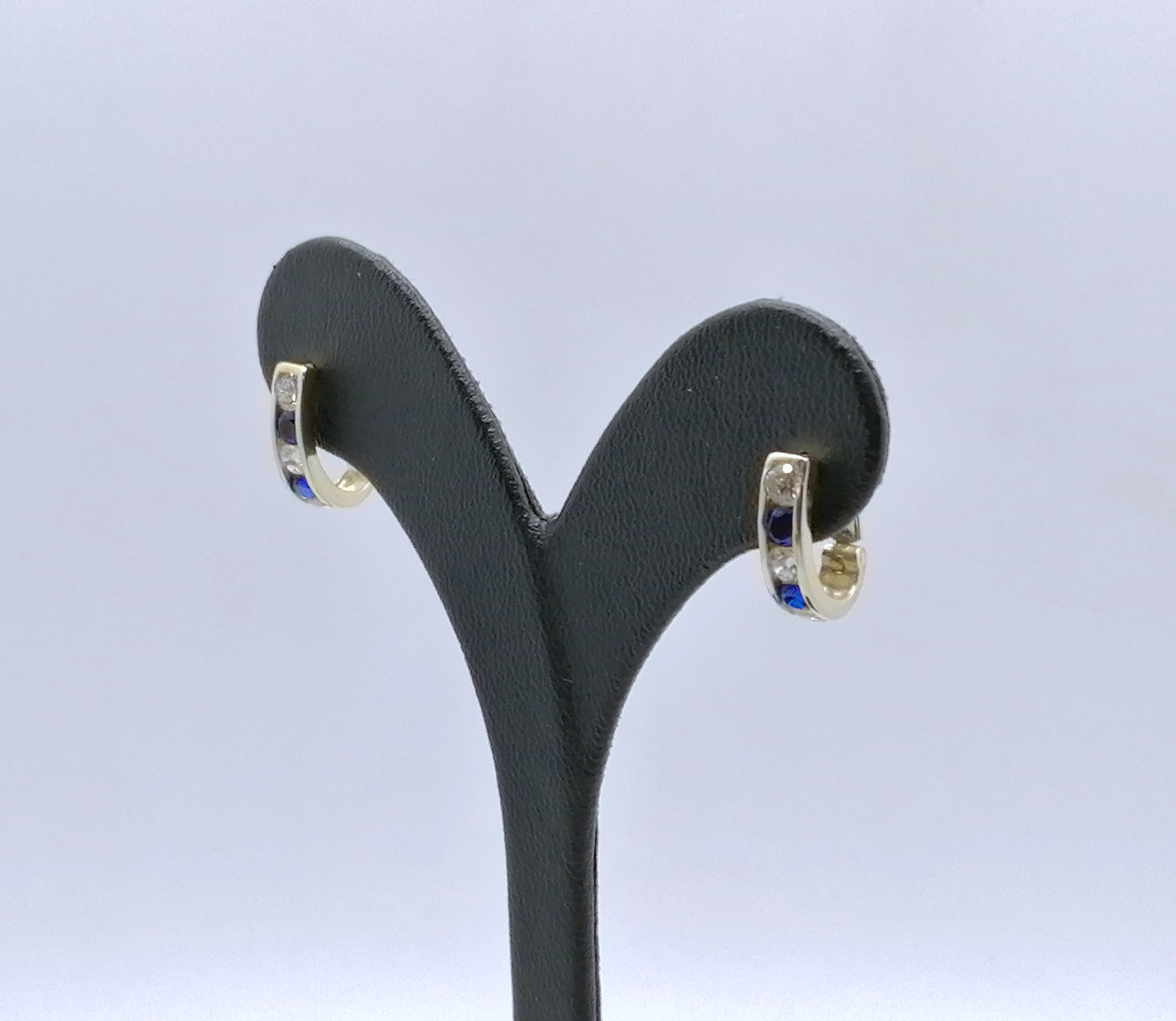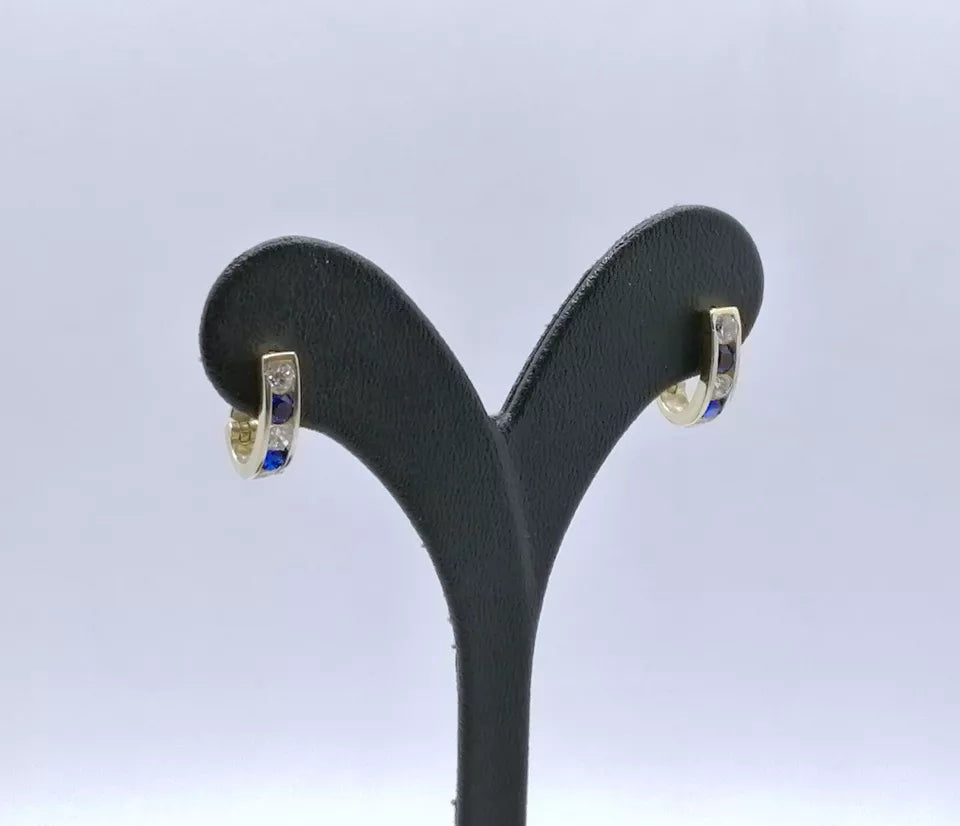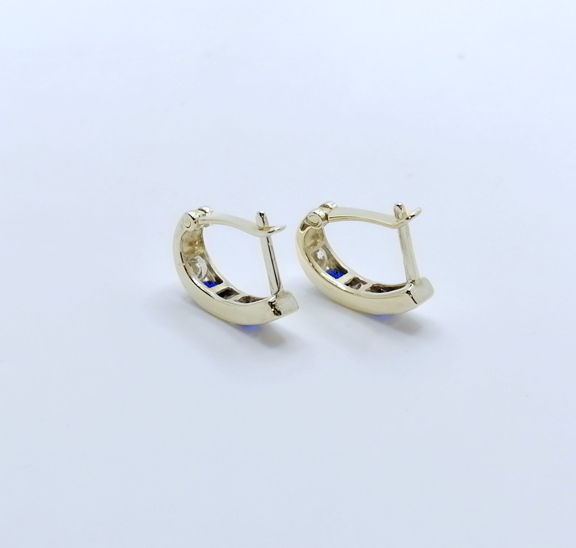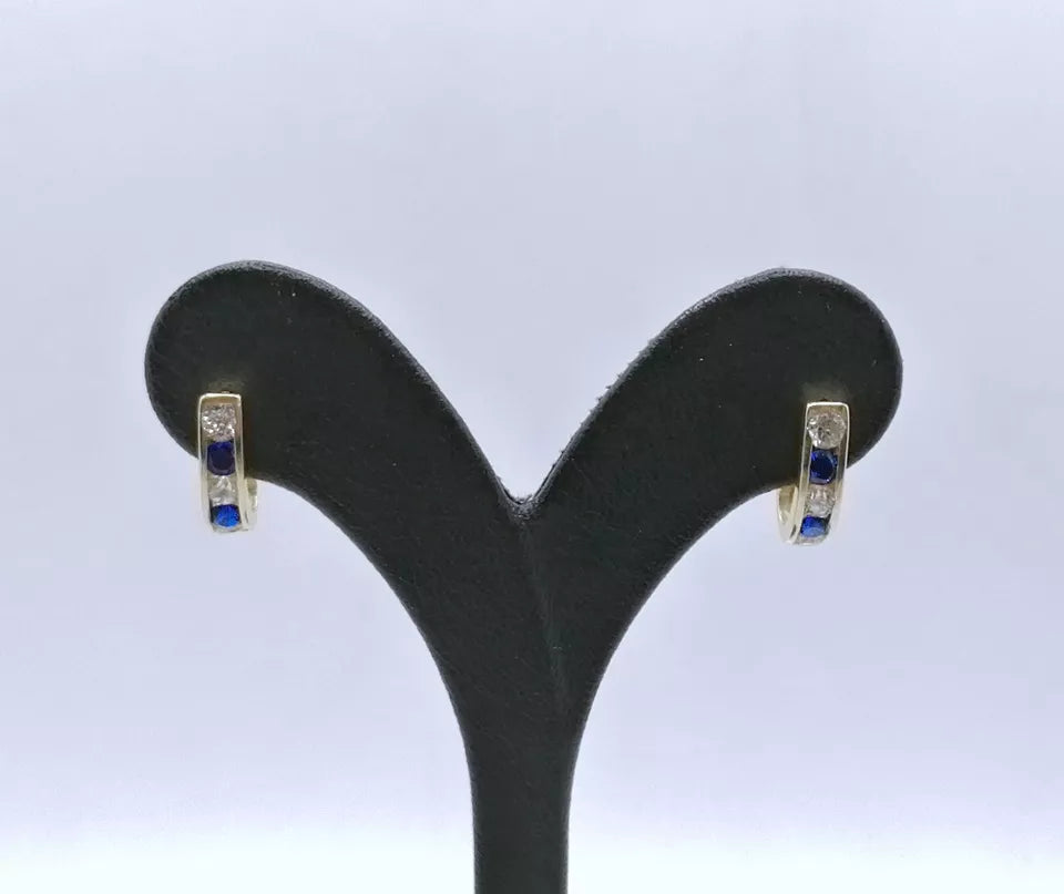 Neuwertige Creolen mit blauen und farblosen Zirkonia. Die Ohrringe sind aus 585er 14 karat Gold gefertigt.