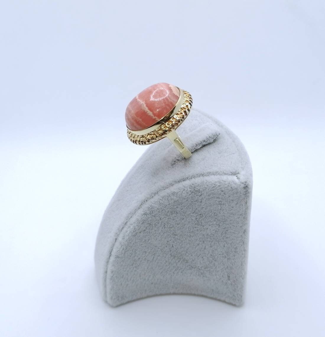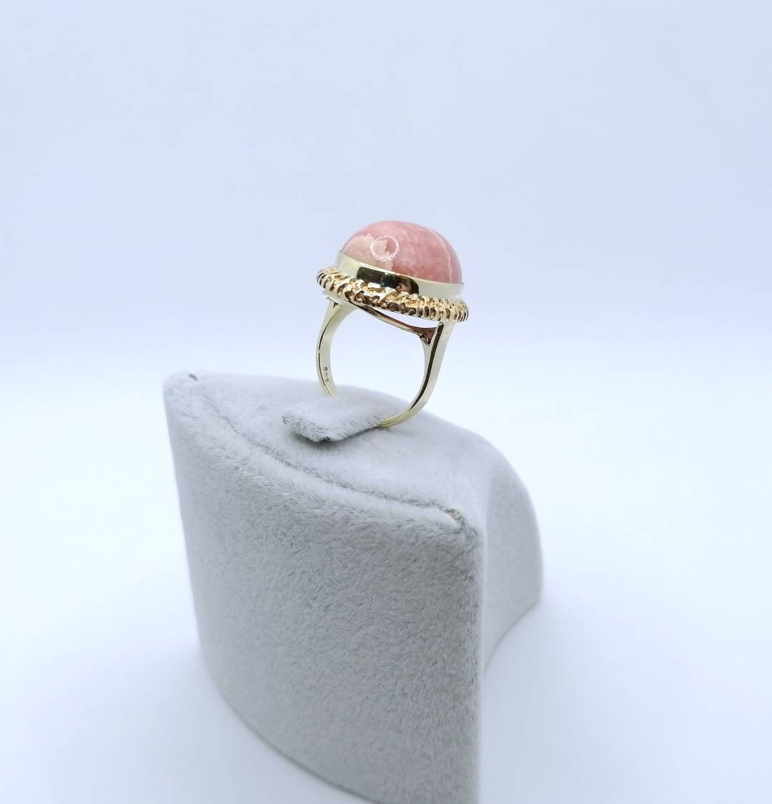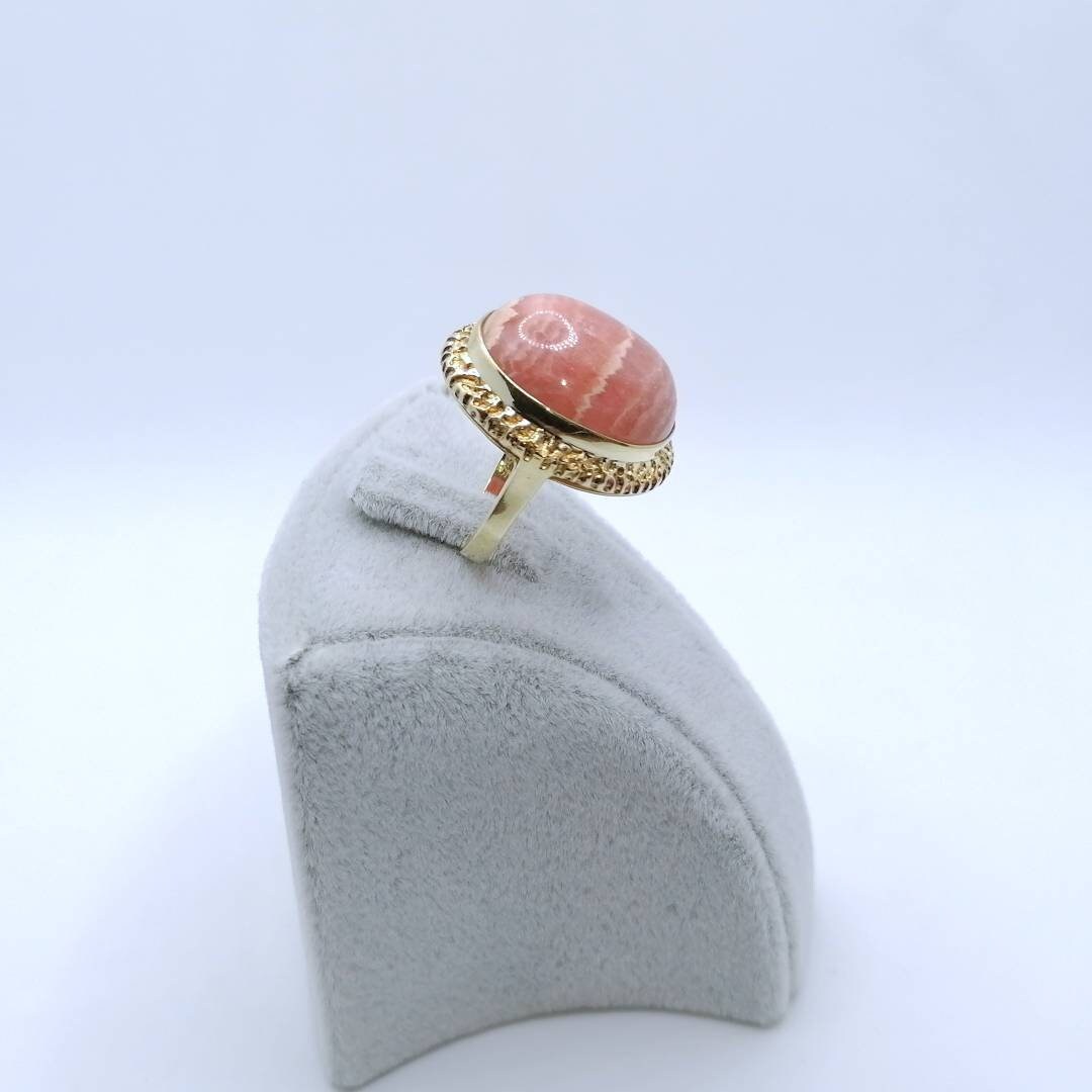 Ein prächtiger Rhodochrosit Goldring. Der Damenring ist aus 585er 14 Karat Gold gefertigt und wartet gespannt auf seine neue Besitzerin.