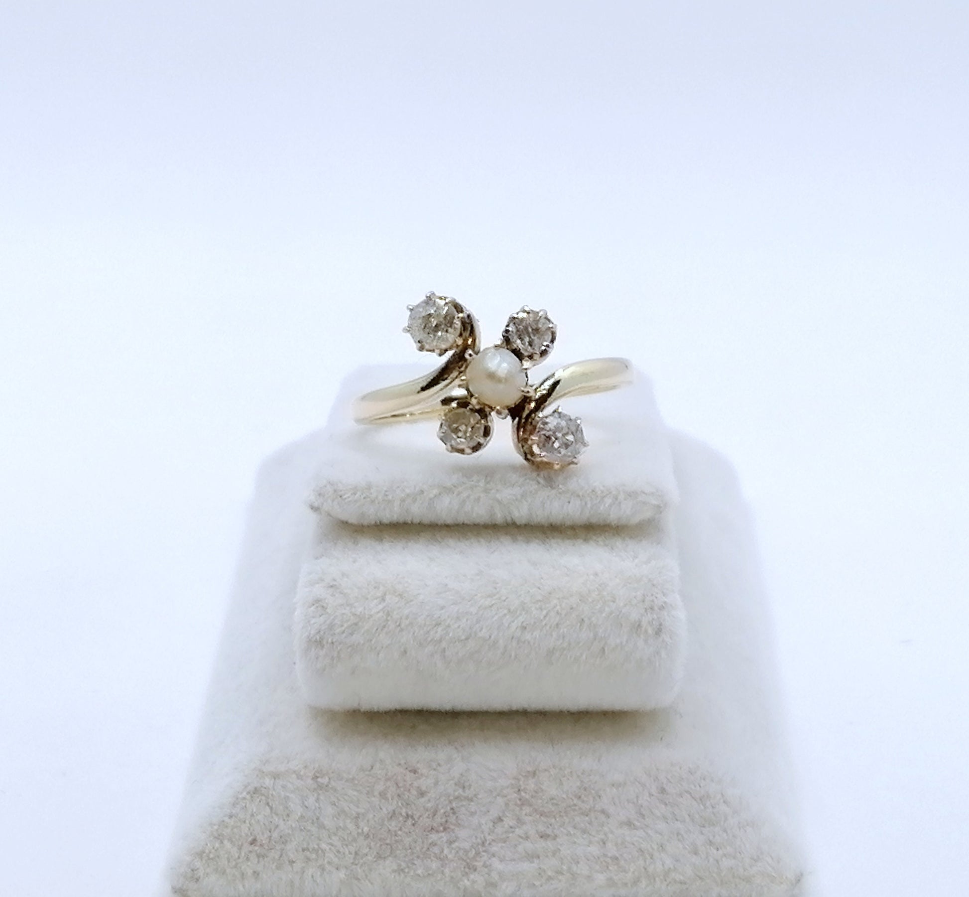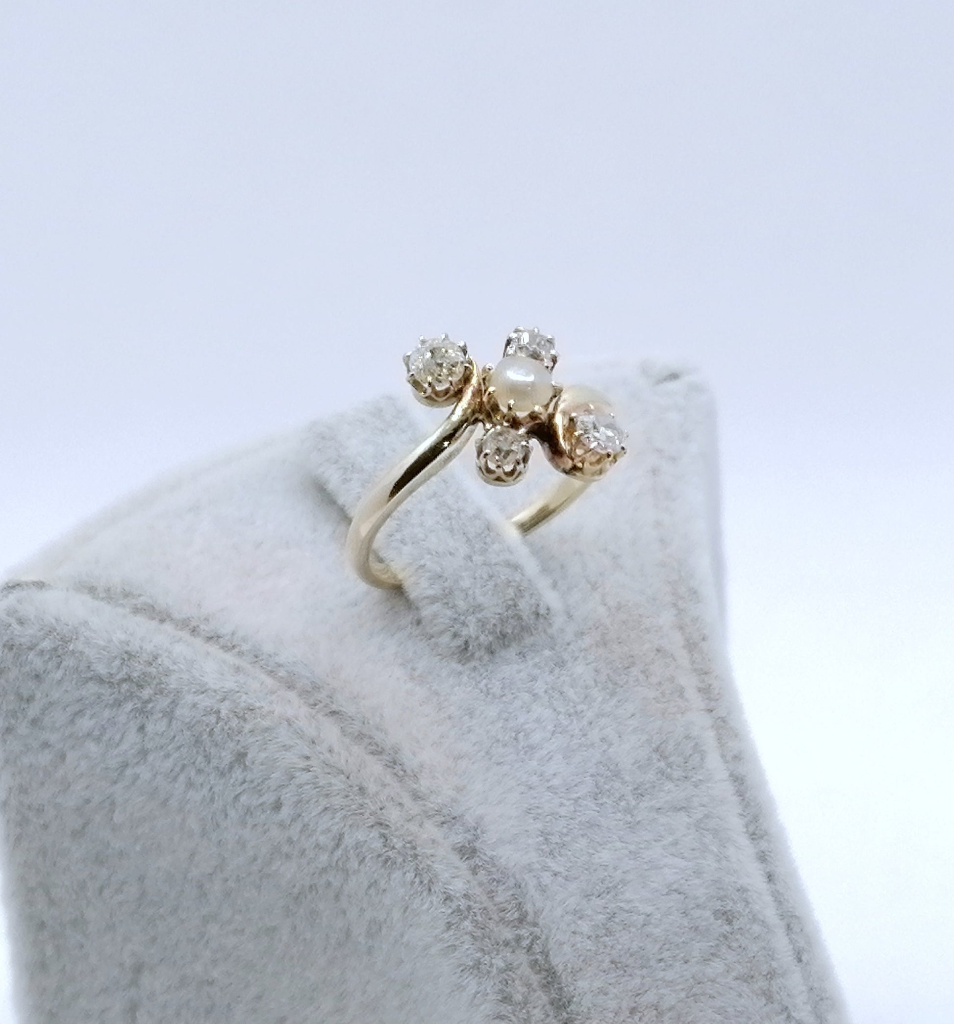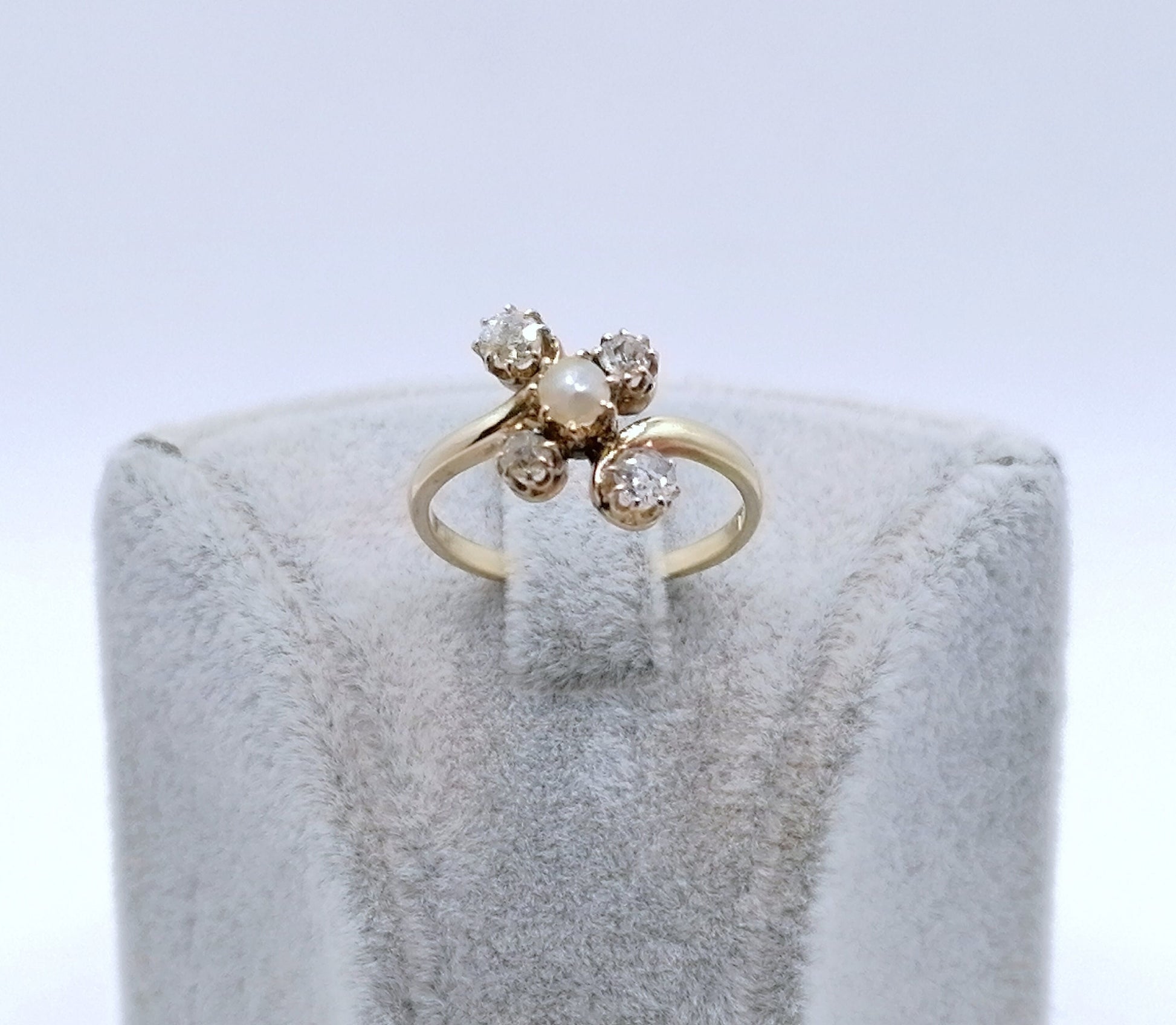 Ring Antik Gold 585er mit Barockperle und Brillanten Altschliff Gr. 51