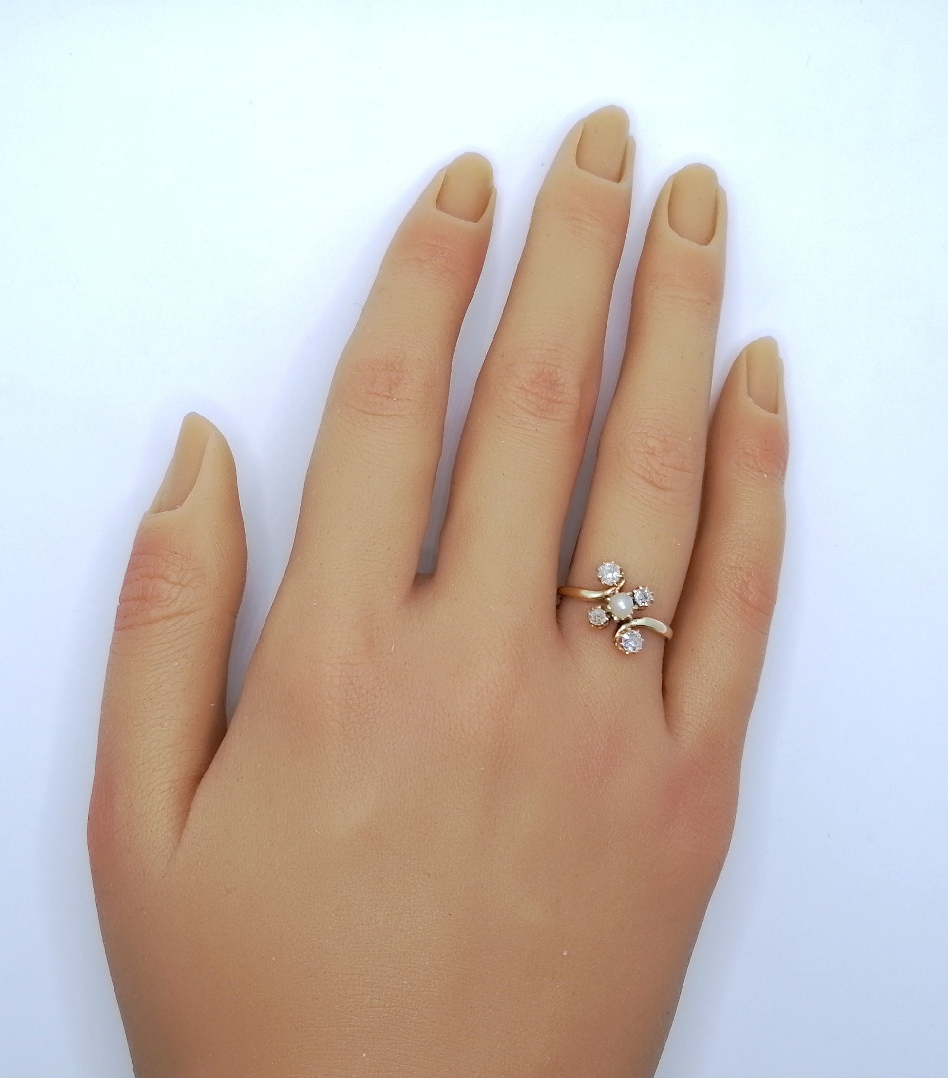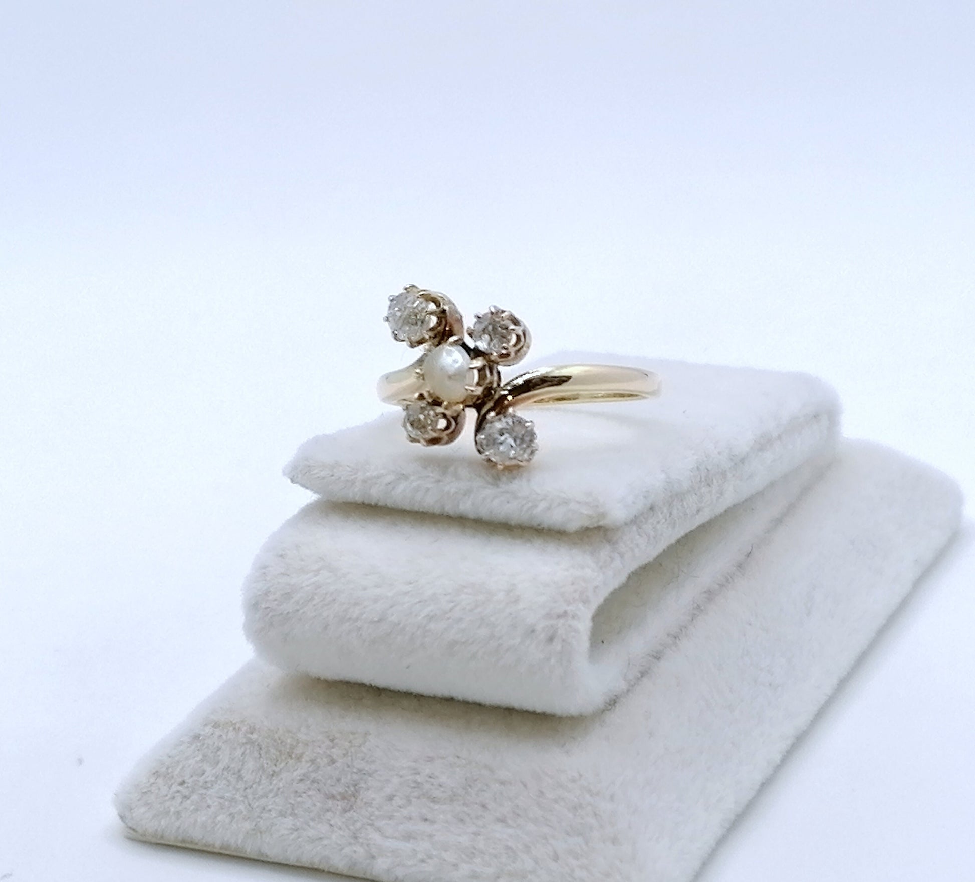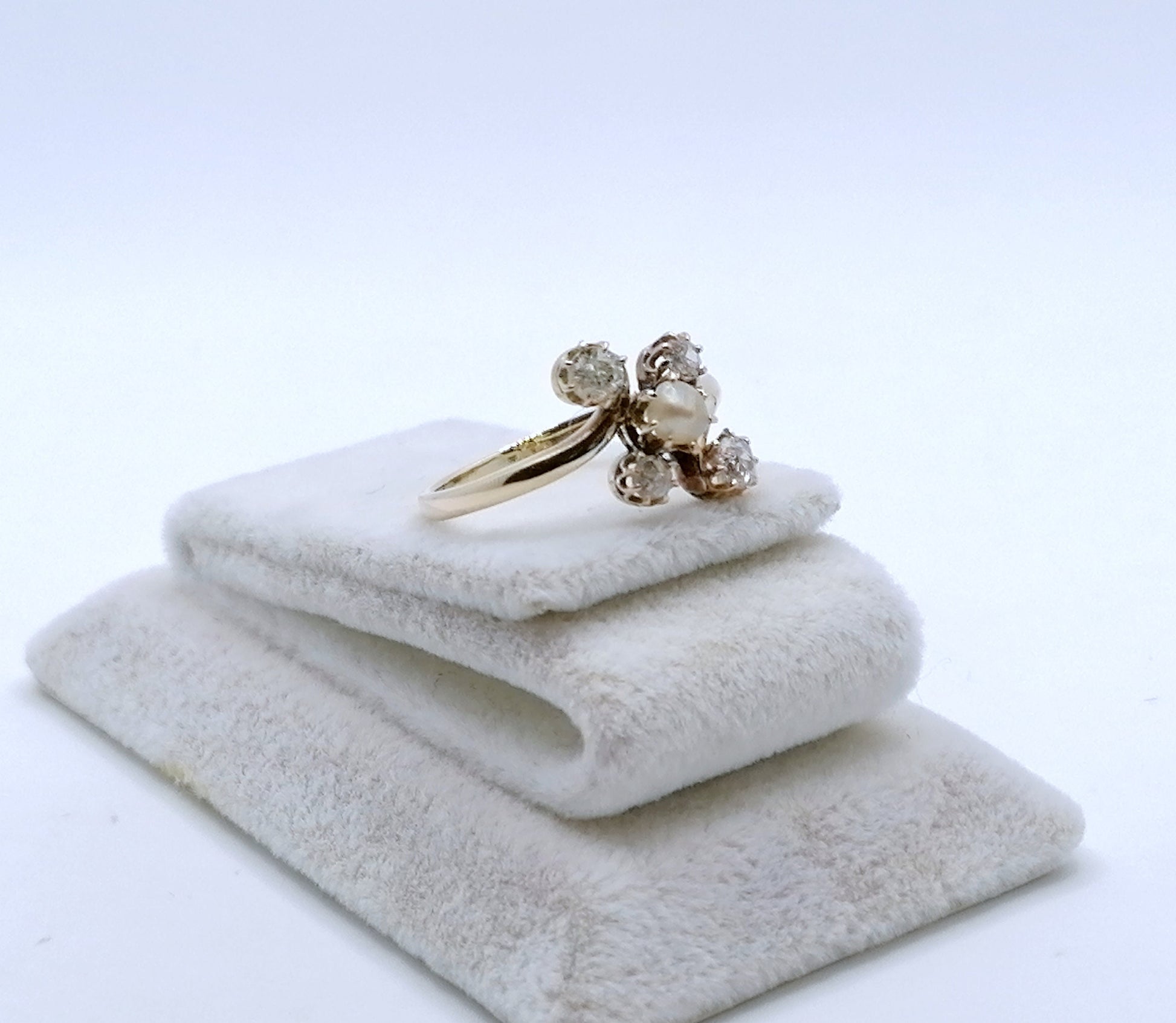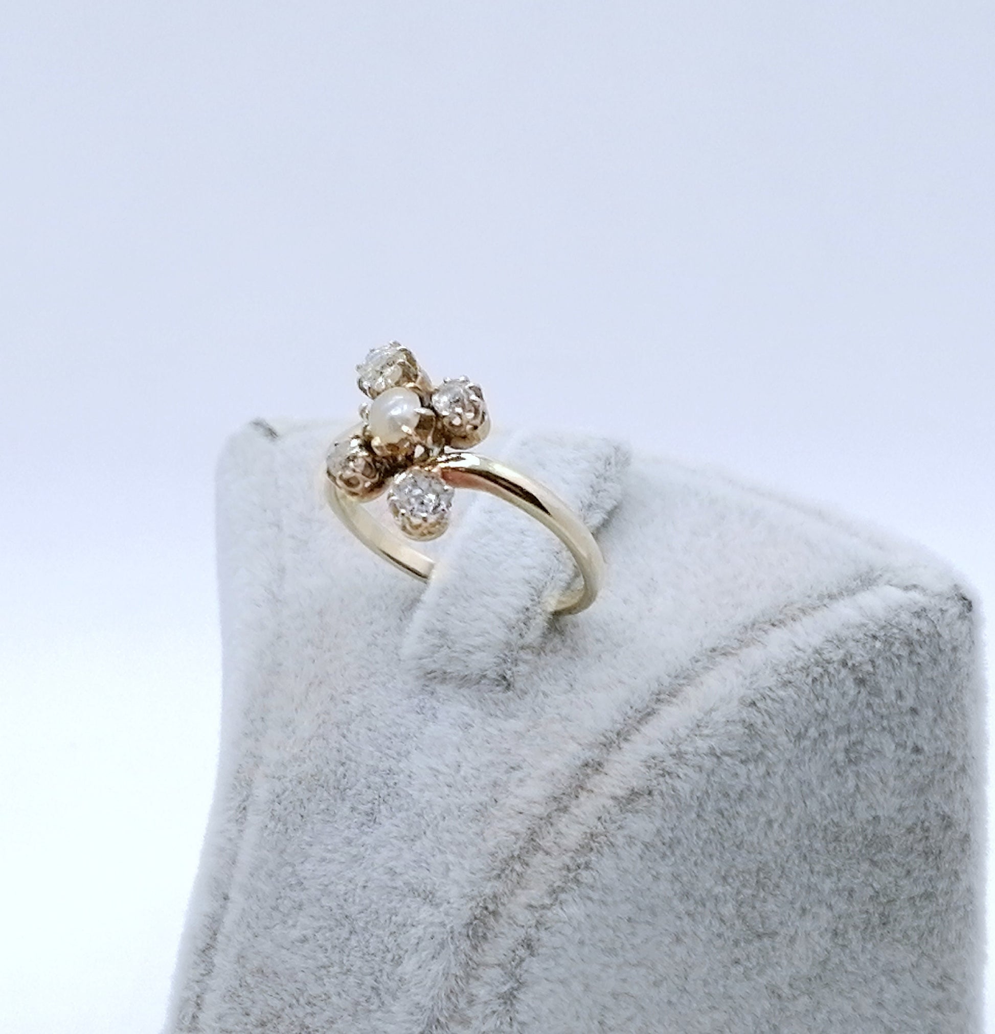 Ring Antik Gold 585er mit Barockperle und Brillanten Altschliff Gr. 51